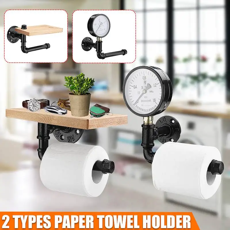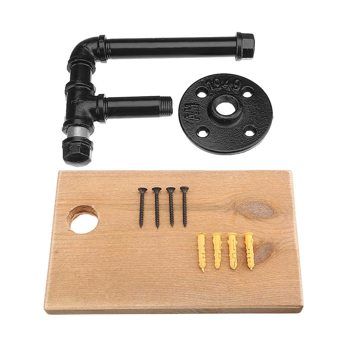 Винтажная Ремесленная промышленная настенная деревянная полка для хранения железная трубка держатель для туалетной бумаги роликовый держатель для полотенец для ванной комнаты