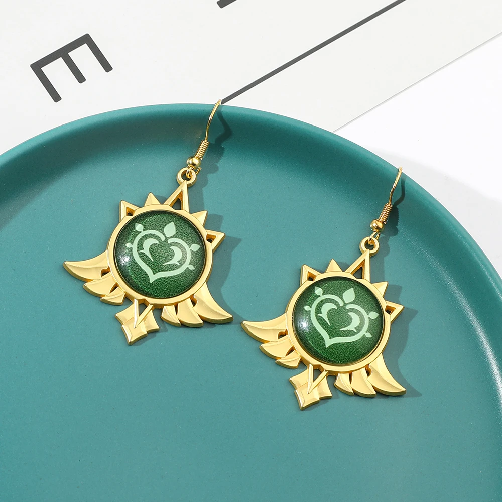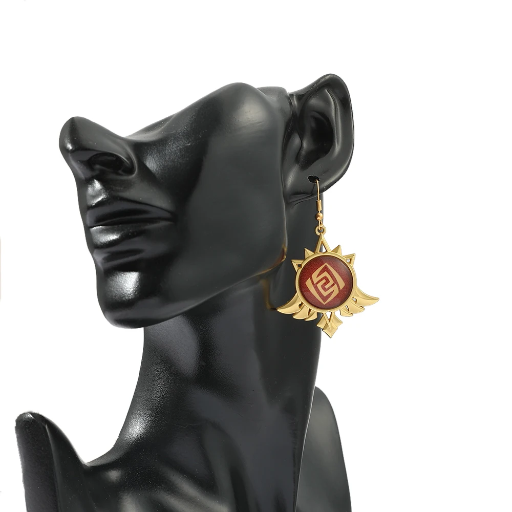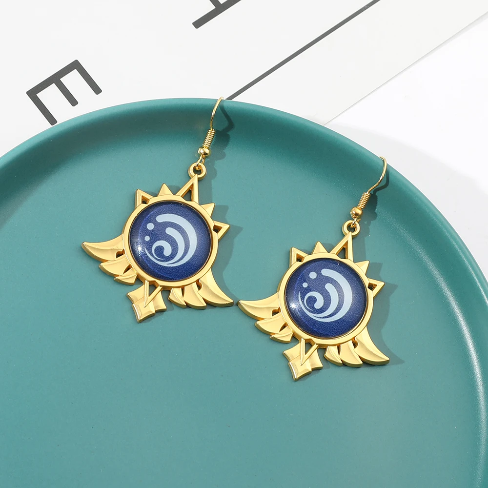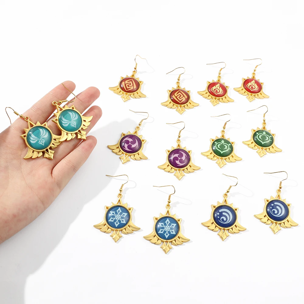 Игровые ударные серьги Genshin, металлические подвесные серьги с круглым глазом Бога, элементы в виде водяного ветра, гроза, огня, ювелирные изделия, реквизит для косплея, подарок