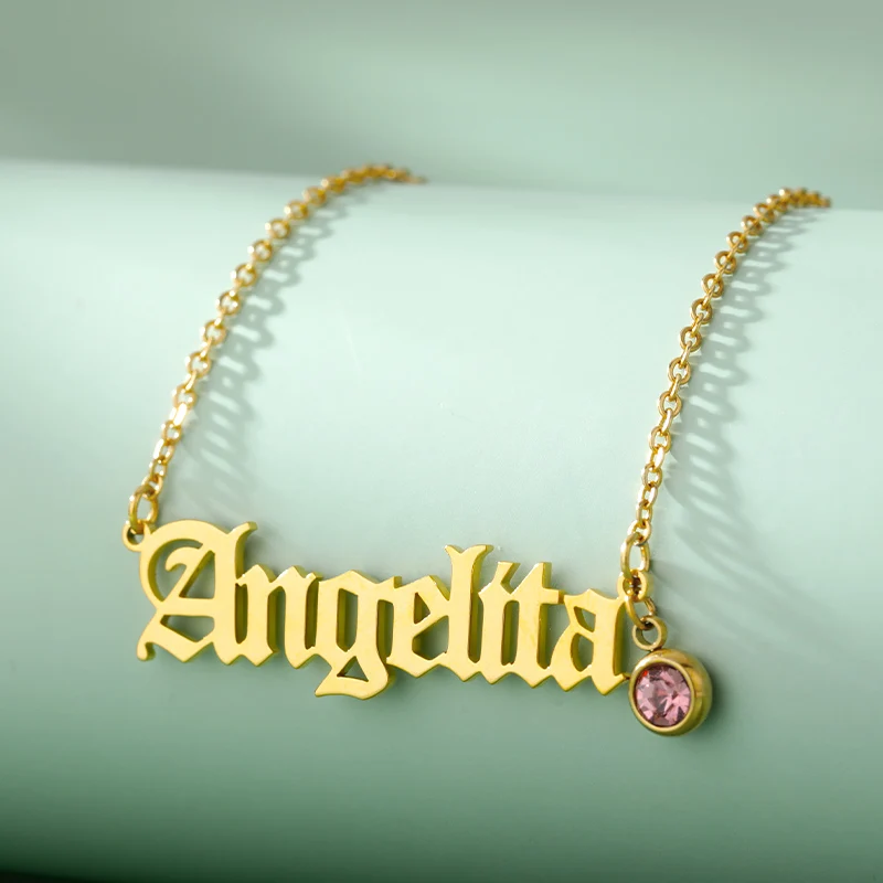Персонализированные именные ожерелья с камнем по рождению из нержав...
