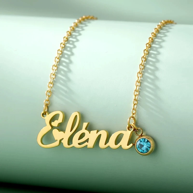 Пользовательское имя ожерелье с зодиакальным камнем для женщин золотой кулон из нержавеющей стали ожерелье для матери день жены подарок подруге