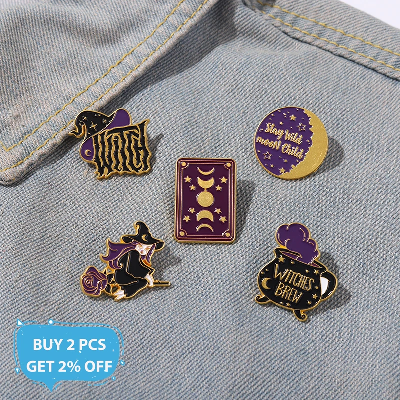 Эмалированные заколки Witch Magic World, милые значки на лацкан для...