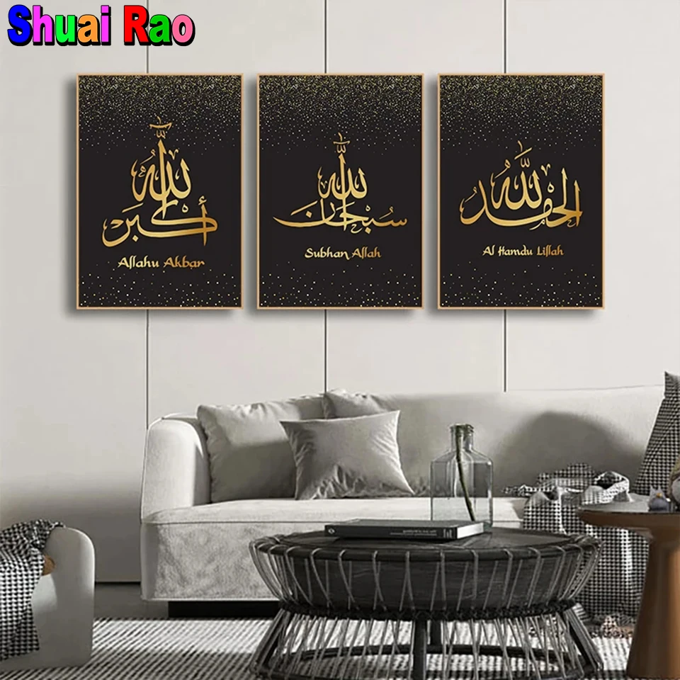 Аллах исламский настенный Искусство diy алмазная живопись полная квадратная Круглая Мозаика каллиграфия Фреска мусульманский Декор