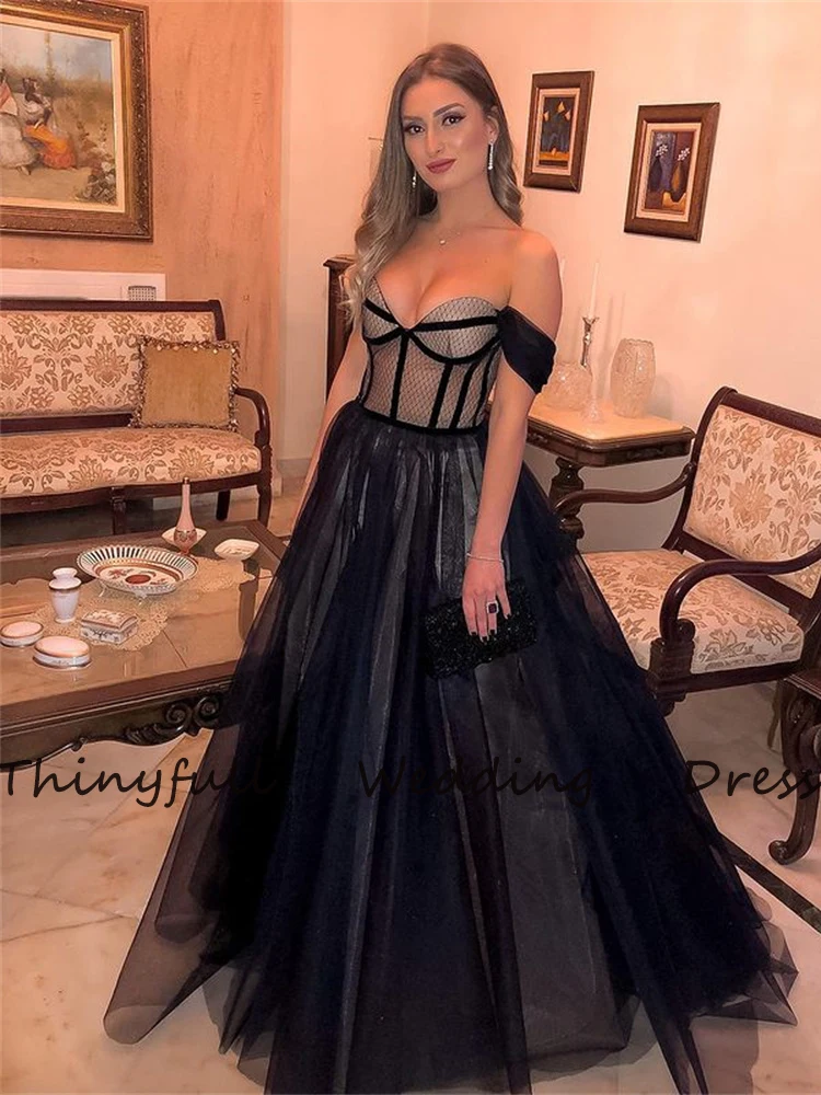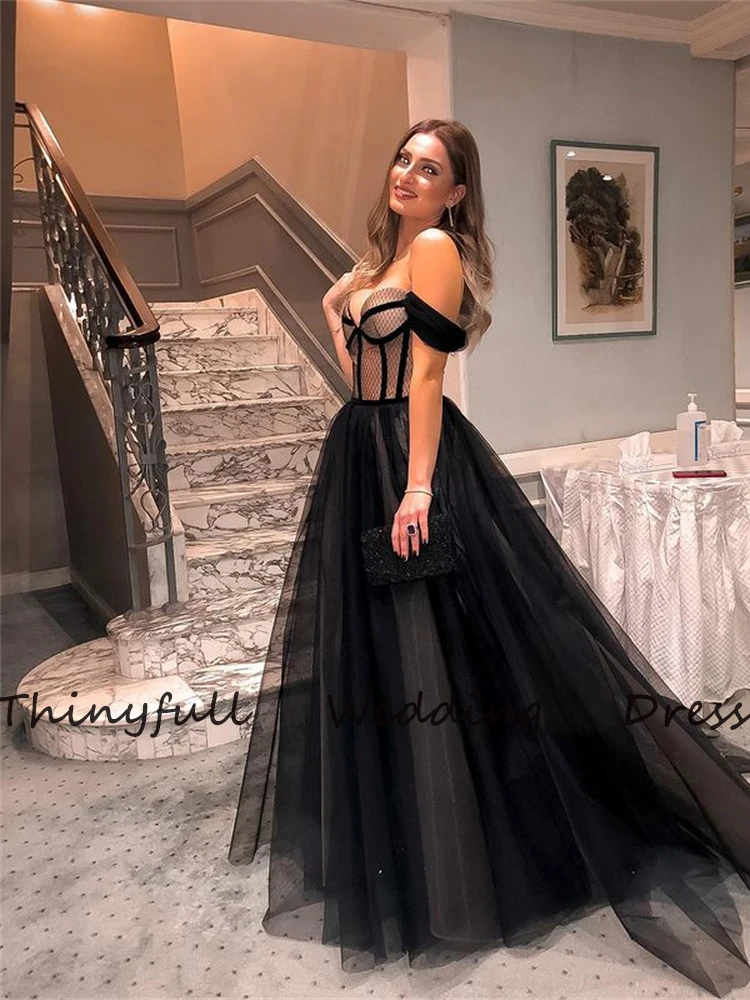 Черные Готические трапециевидные свадебные вечерние платья 2021 с открытыми плечами без рукавов вечерние платья принцессы для невесты