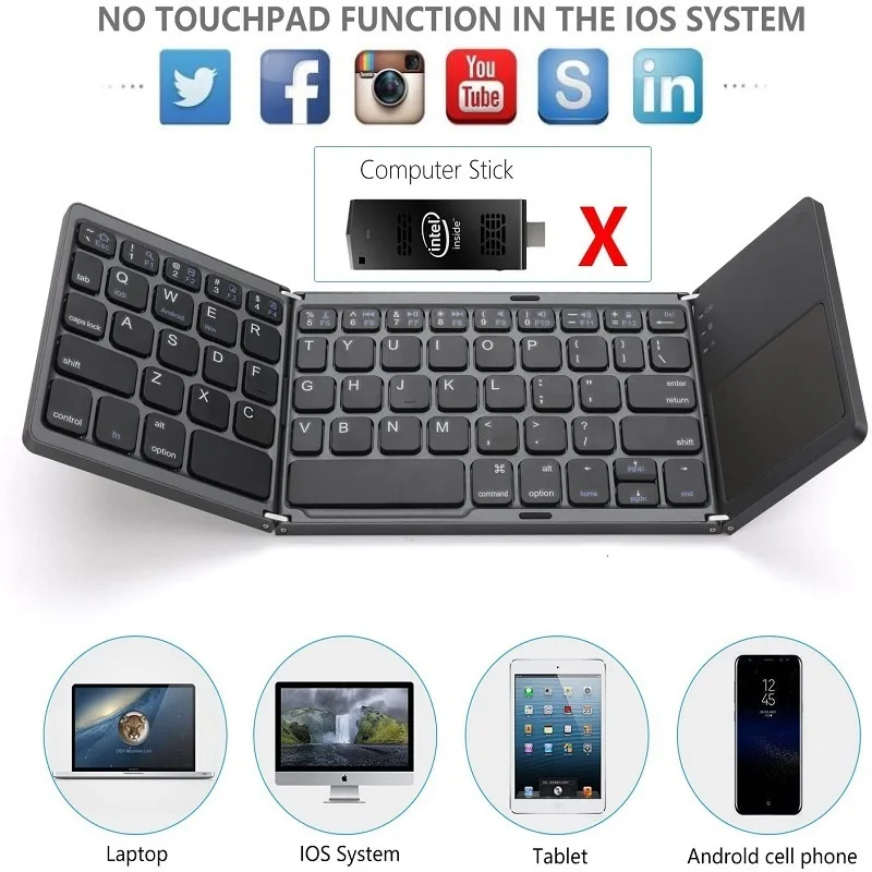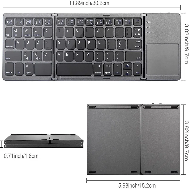 TypeFolding Keyboard Bluetooth Wireless Rechargeable With Touchpad