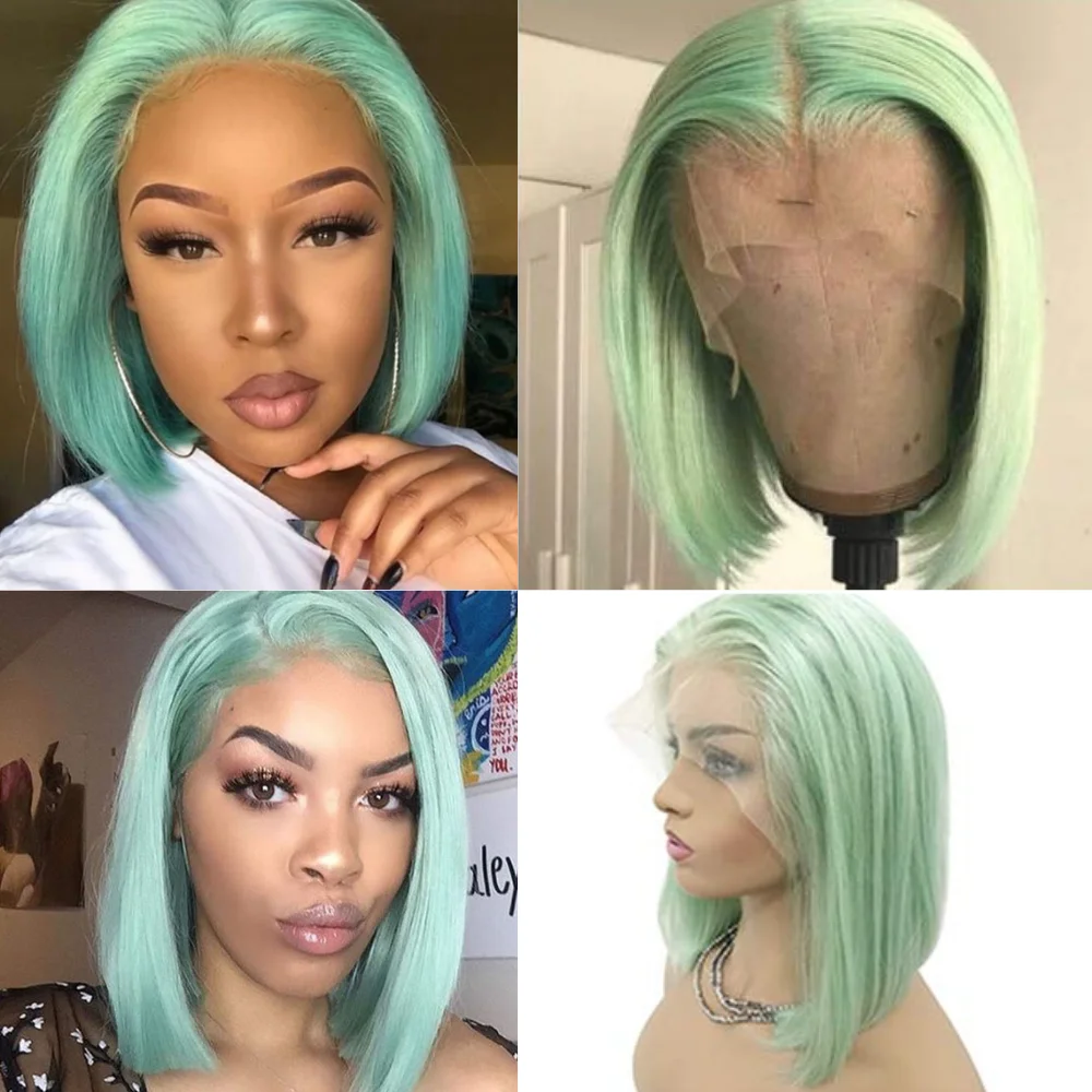 Mint Blue Lace Bob WigShort Colored Bob Wig Lace Front Bob Wigs