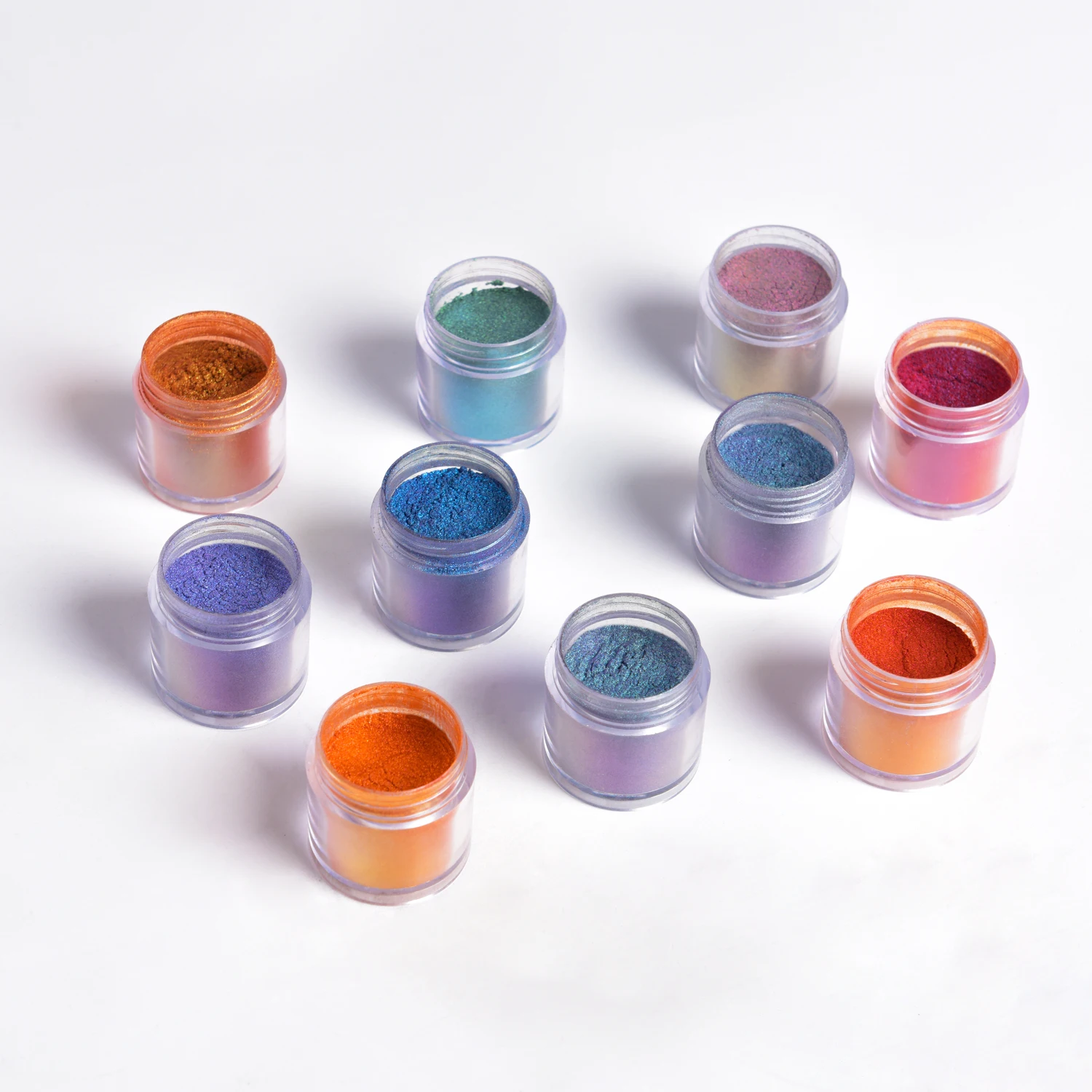 10 цветов s : 10 различных цветов s высококачественный порошок слюды, каждый 5g/0,17 унций. (Примечание: меняющий цвет пигмент имеет разный объем из-за плотности порошка.)