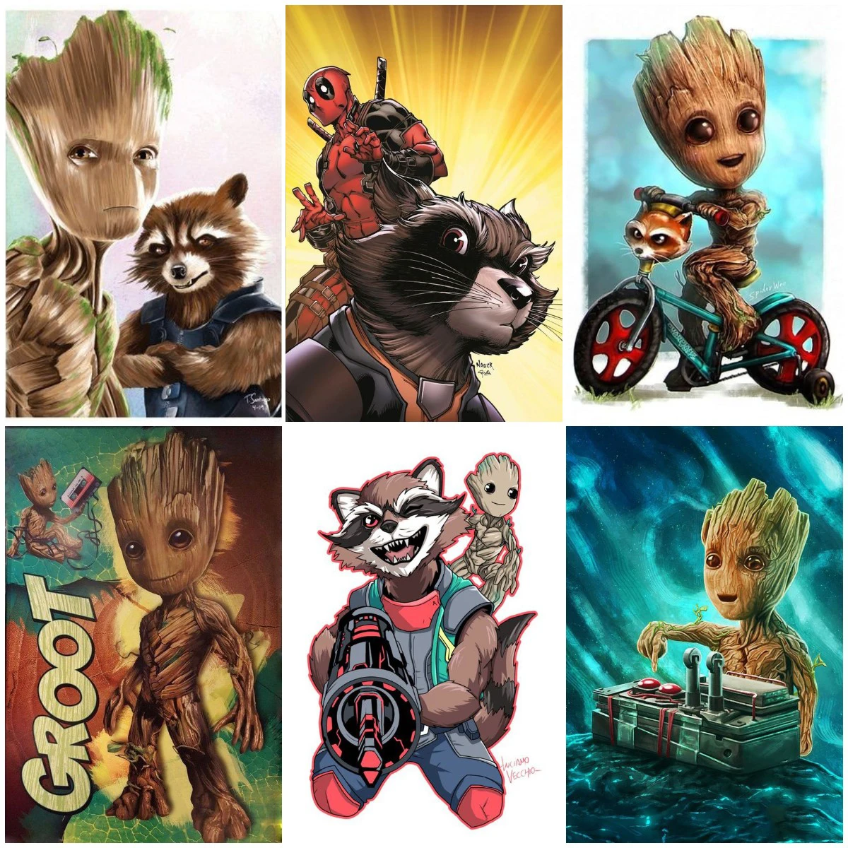 Алмазная живопись Disney 5D Marvel ракета Грут, мозаика сделай сам, вышивка крестиком, бриллиантовая вышивка, полная Стразы