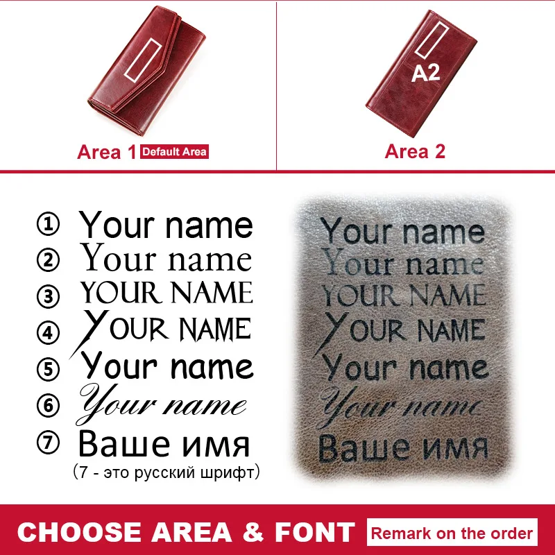 Кожаный кошелек с RFID-защитой и гравировкой имени, Женский кошелек на молнии с застежкой, Женский кошелек из натуральной кожи, длинные женские кошельки, Дамский клатч, сумки
