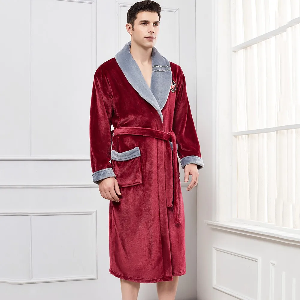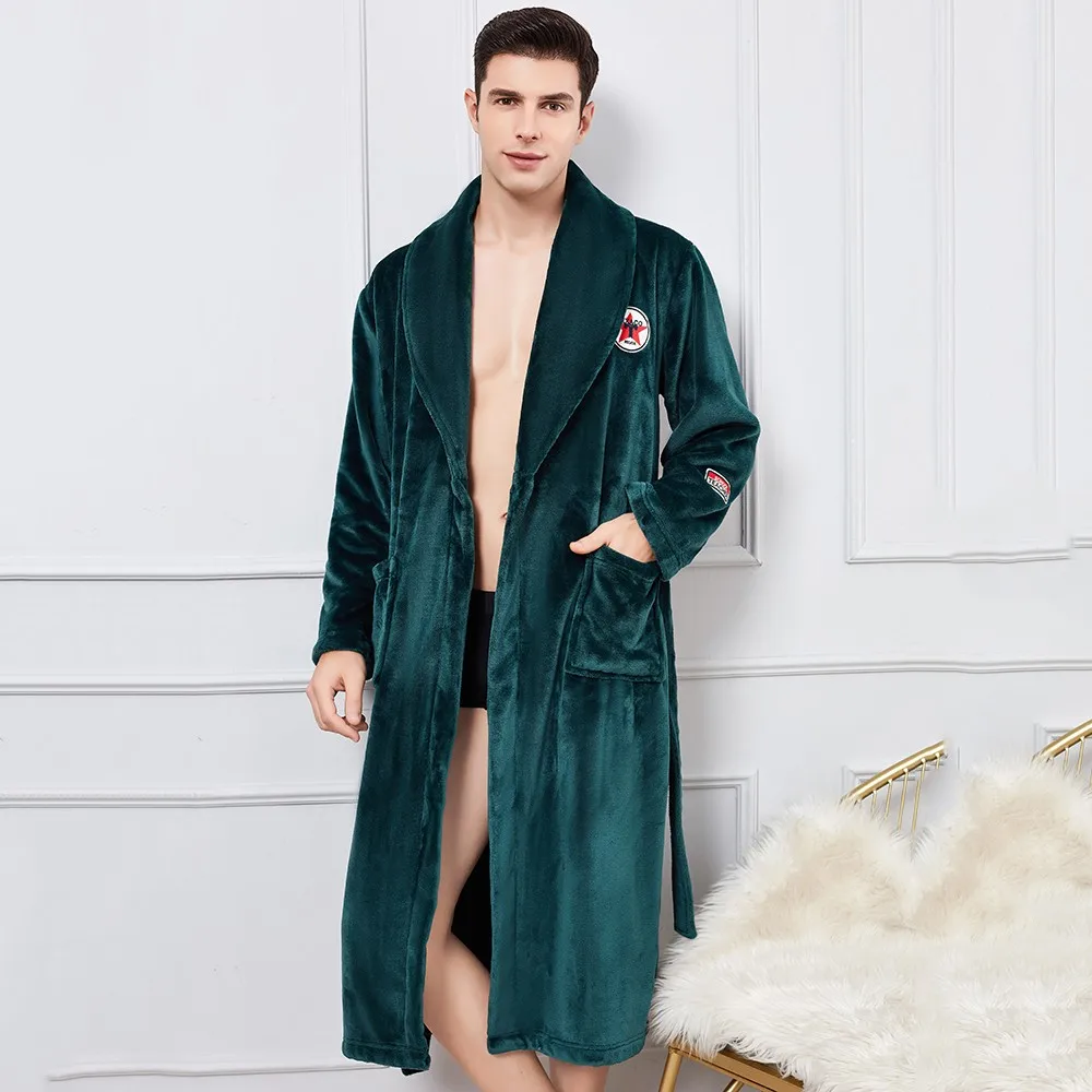 Фланелевый мужской Халат размера плюс 3XL, одежда для сна, зимнее теплое кимоно, халат, ночная рубашка из плотного кораллового флиса для пар, Мужская домашняя одежда