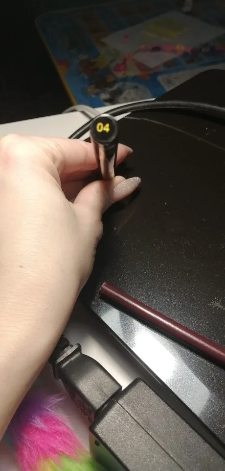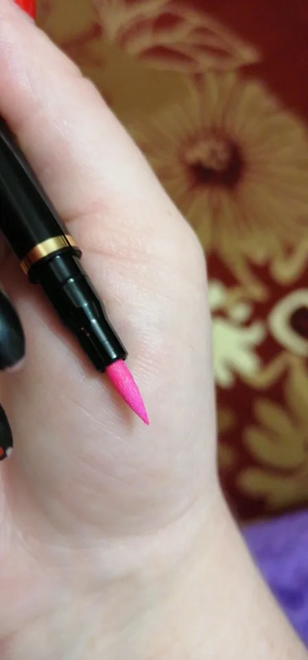 То что фиолетовый цвет почти не видно, больше на черный смахивает.Стирается очень быстро,даже обычной ватной палочкой