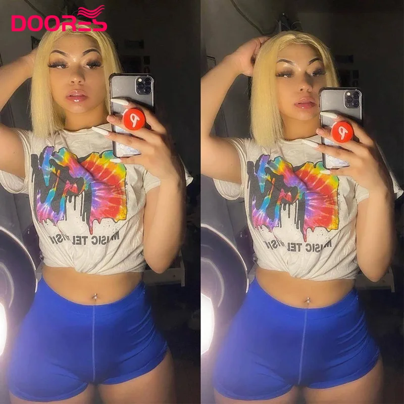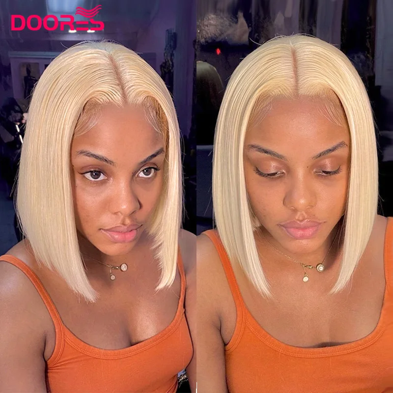 613 светлые короткие прямые парики боб, парики из человеческих волос на сетке спереди, HD прозрачные предварительно выщипанные парики на сетке для черных женщин, парики с T-образной частью