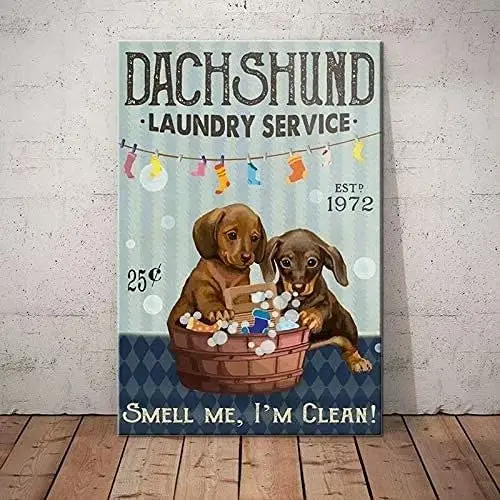 Забавная собака, металлический жестяной знак, Такса, услуги стирки, запах меня, я чистая печать, плакат, Химчистка, ванная комната, туалет, гостиная