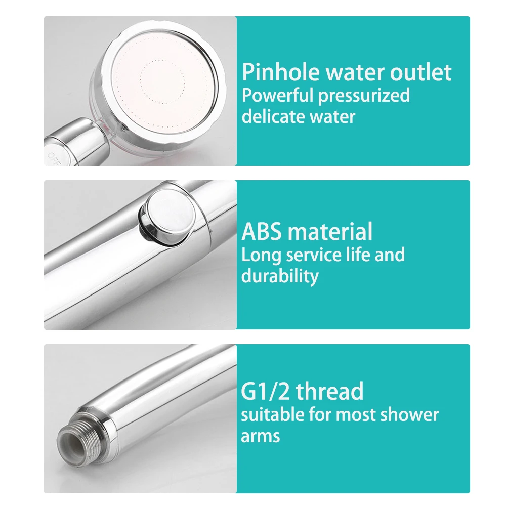 Особенности:<Материал хорошего качества: Изготовлен из высококачественного АБС-пластика, который антивозрастной, прочный и износостойкий.<Высокое давление: мощный вентилятор турбонаддува потока воды, который может помочь вам очистить мыльные пузыри и волосы остаются в течение нескольких секунд. Это также идеальный выбор для душа домашних животных.<Регулируемое давление воды: можно легко регулировать давление воды для удовлетворения ваших различных потребностей.<Хлопковый фильтр: впитывает грязь, пыль и другие вещества в воде, очищая воду для душа и отслеживая качество воды.<Хорошая замена: отличная замена для вашей старой или сломанной душевой головки высокого давления.<Простота установки: не нужно звонить сантехнику, быстрая и простая установка, можно легко подключить к большинству душевых шлангов.<Применение: идеально подходит для вашей ванной комнаты, душа, отеля и многого другого, идеально подходит для купания взрослых, детей и домашних животных, подарит вам и вашей семье отличный опыт принятия душа в вашей ванной комнате