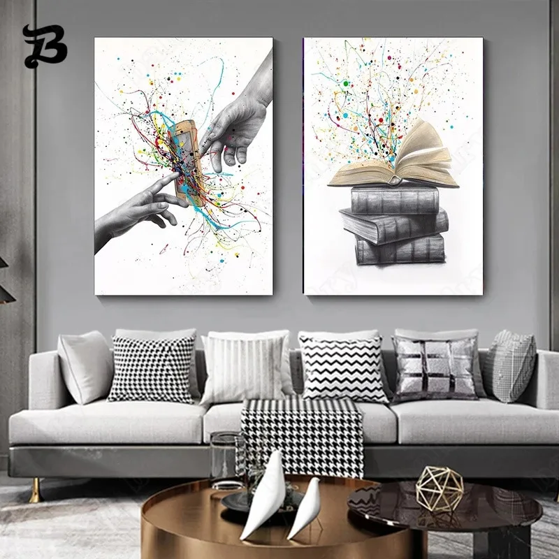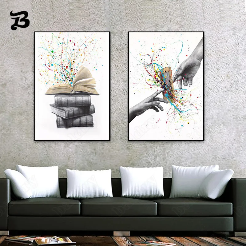 Холст для гостиной черно-белые книги мобильный телефон абстрактные постеры принты граффити настенное Искусство Картины домашний декор