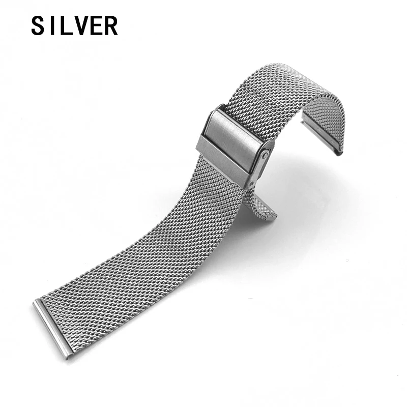 Ремешок Миланская петля для наручных часов, универсальный серебристый металлический браслет из нержавеющей стали 304, 10 мм 12 мм 14 мм 16 мм 18 мм 20 мм 22 мм
