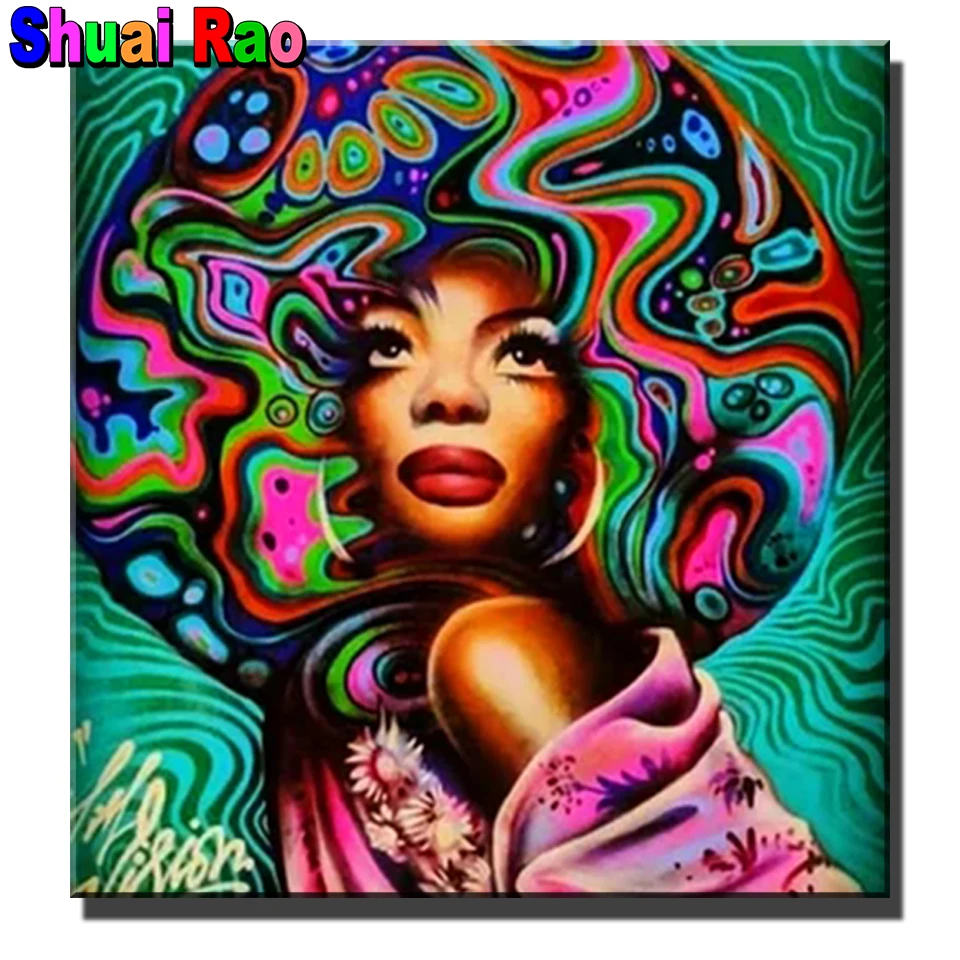 Алмазная вышивка сделай сам с кристаллами, красочная женщина, вышивка крестиком, полностью квадратнаякруглая Алмазная вышивка, портрет девушка,
