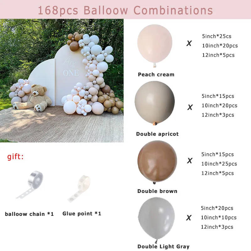 168 шт Ретро коричневые вечерние шарики для украшения принадлежности для дня рождения свадьбы крем для декорации торта персиковый Воздушный Шар Комплект гирлянды детский душ