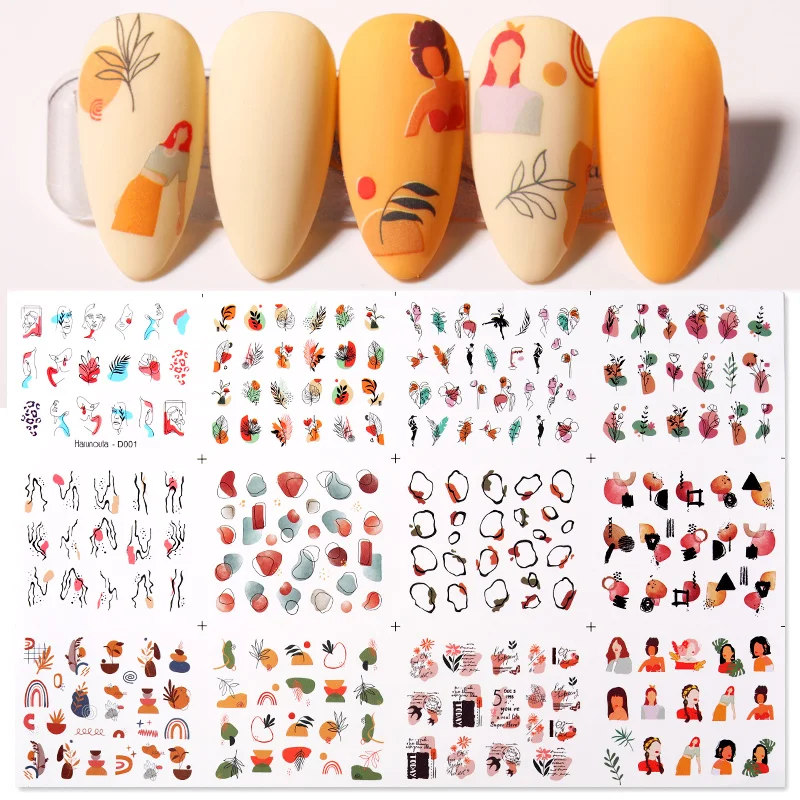 12 видов стилей ногтей Водные Наклейки абстрактные леди уход за кож...
