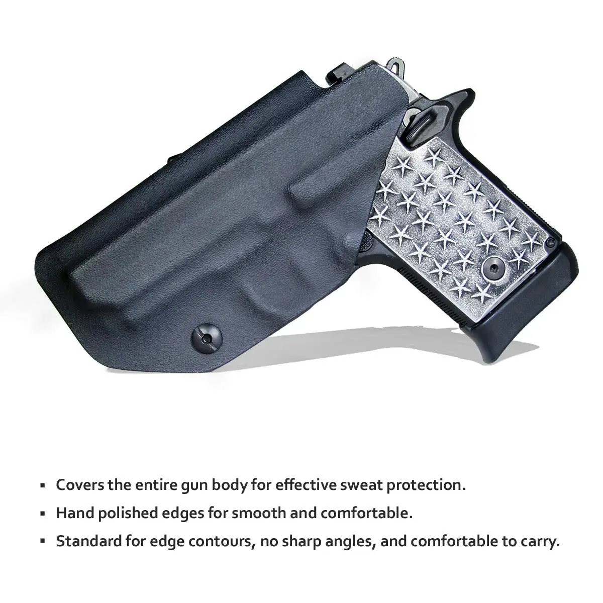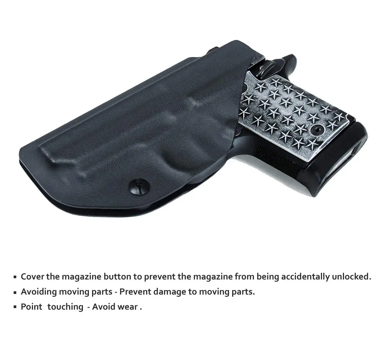 Полюса. Ремесло Sig Sauer P938 кобура ручной работы изготавливается из прочной 0,8 "KYDEX. Он не только водонепроницаемый, устойчивый к поту, но также обладает высокой прочностью, высокой прочностью, ударопрочностью, износостойкостью и устойчивостью к старению. Может использоваться в различных условиях. Применение. Таким образом, вы всегда можете положиться на него, чтобы сохранить свою жизнь.