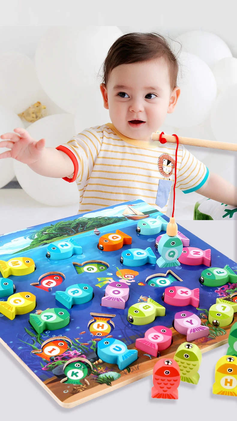 Деревянная игрушка для рыбалки Монтессори, обучающая буквенно-цифровая рыболовная игрушка для дошкольного обучения, познавательная цветная буква