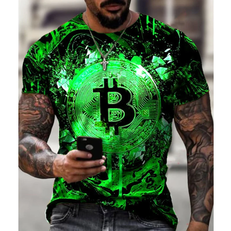 Мужская футболка с 3D принтом биткоина 2021, летняя мужская футболк...
