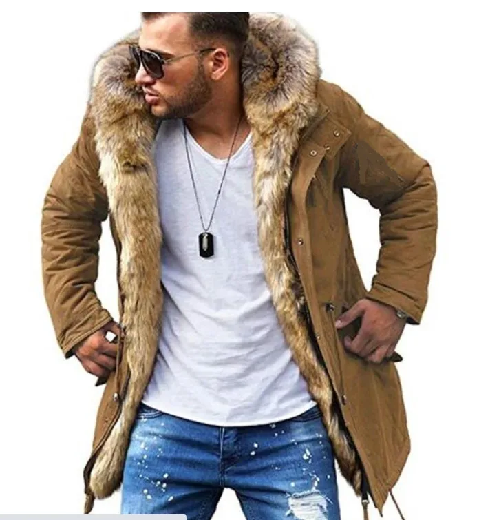 Мужская теплая парка на шерстяной подкладке, утепленная Повседневная куртка с капюшоном и меховым воротником, защитные зимние куртки в классическом стиле