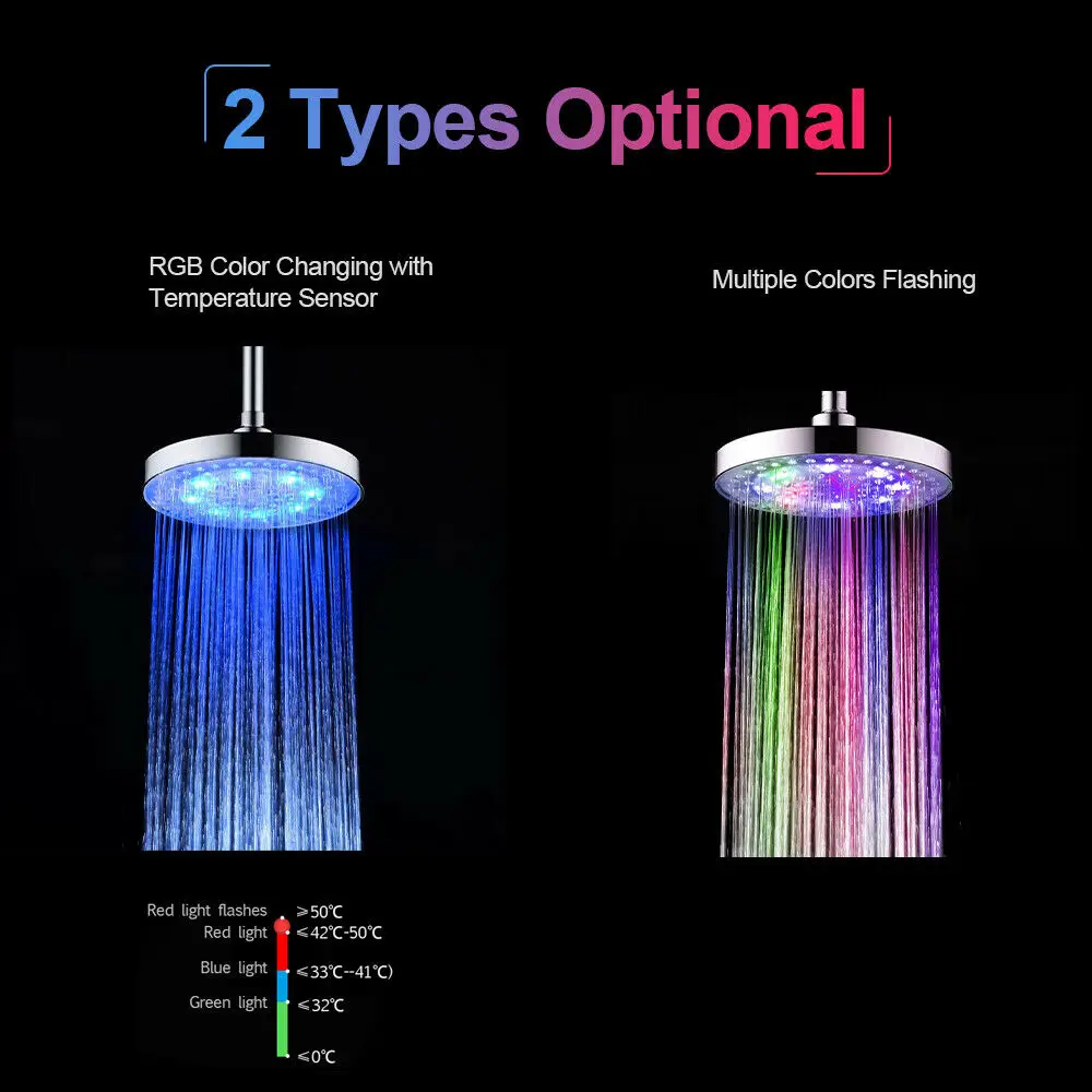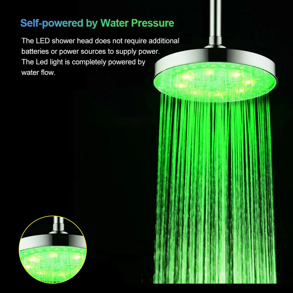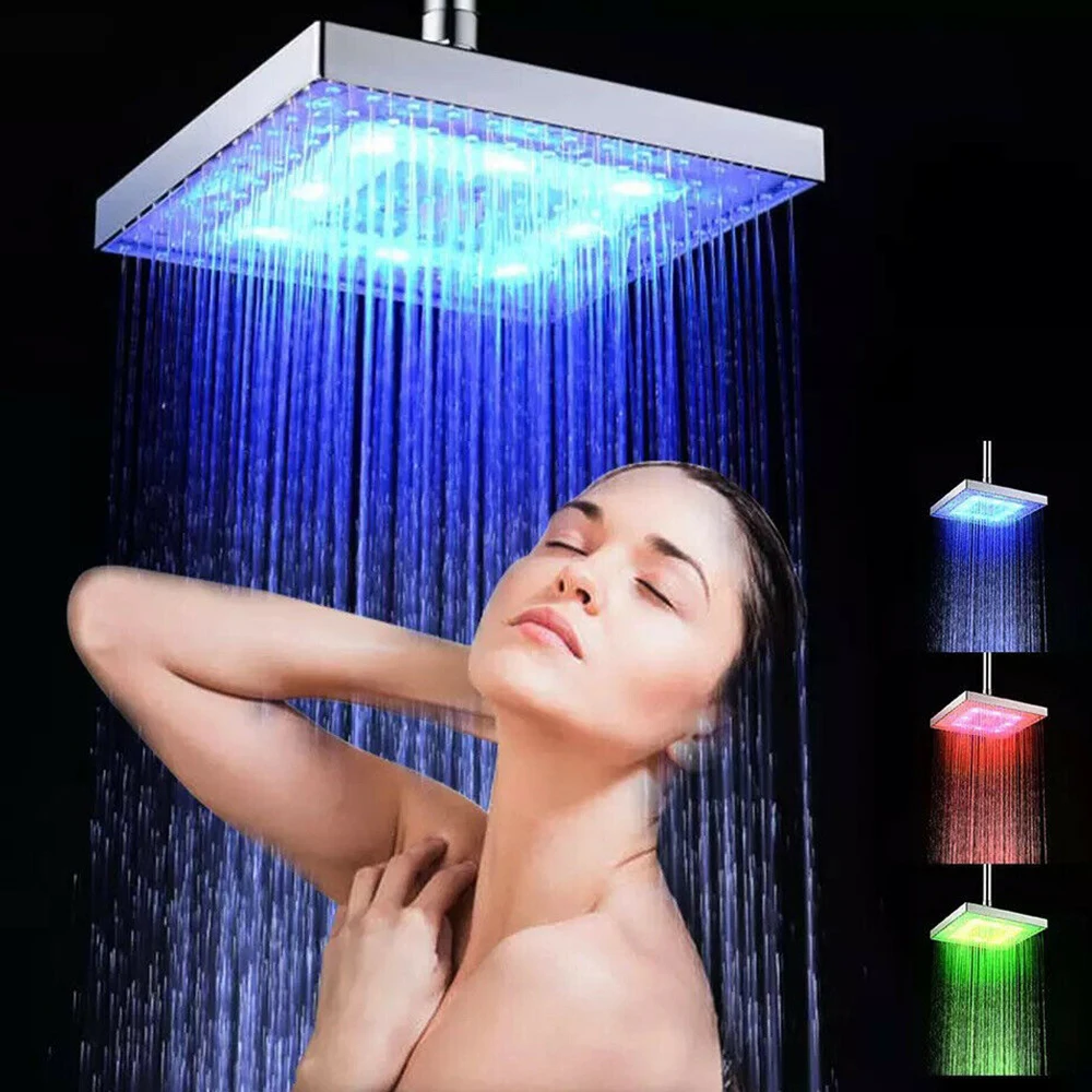 8-дюймовая круглая квадратная насадка для душа из нержавеющей стали, насадка для душа с дождевой насадкой для ванны, автоматически меняет цвет, тропический душ для ванной комнаты