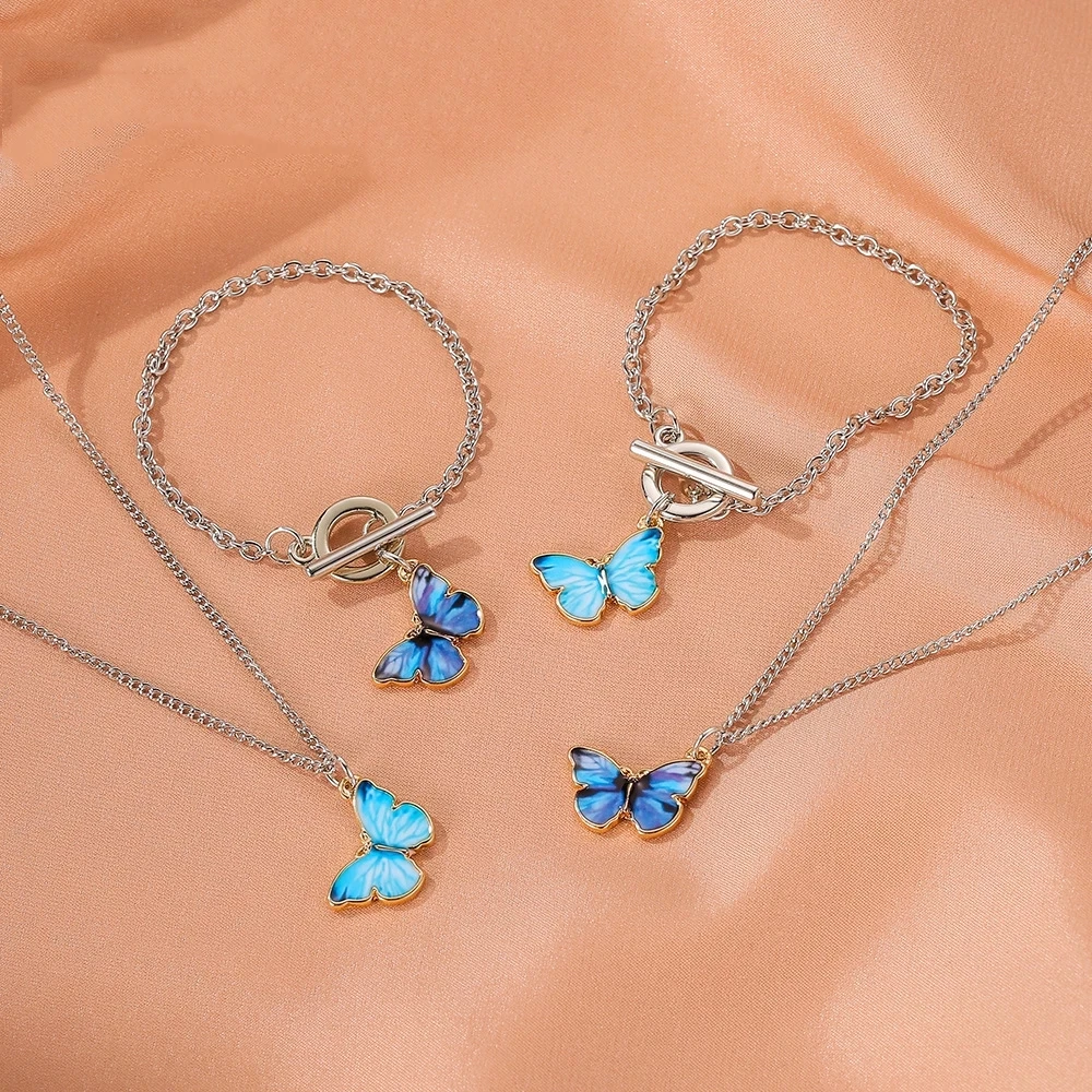 Ожерелье с синей фиолетовой бабочкой для женщин, модный простой кул...