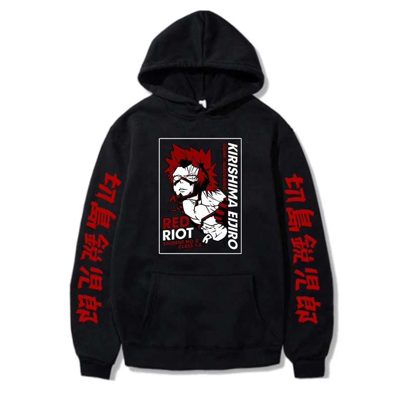 Толстовки с капюшоном в стиле аниме Моя геройская Академия в стиле Харадзюку, готические крутые мужские зимние толстовки с капюшоном и длинными рукавами в стиле красного райот Eijiro Kirishima
