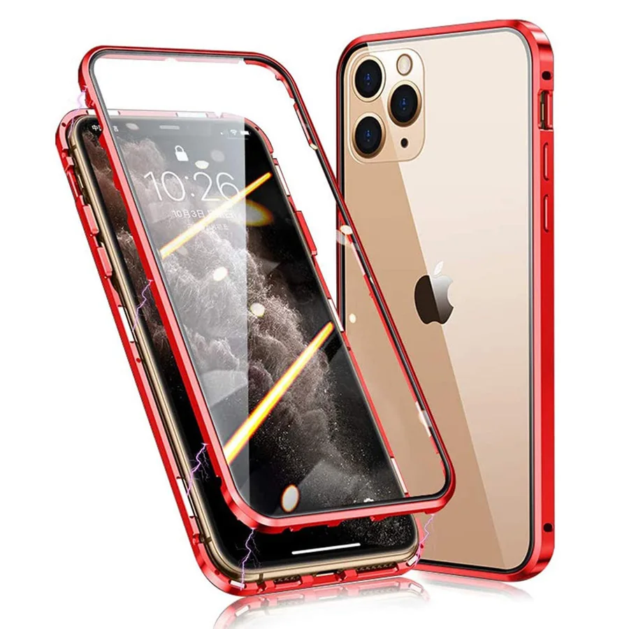 360 магнитный чехол для iPhone 13 12 11 Pro Max XR X XS металлический двойной чехол из закаленного стекла iPhone13 Pro Mini 13Pro 12Pro 7 8 6 SE чехлы