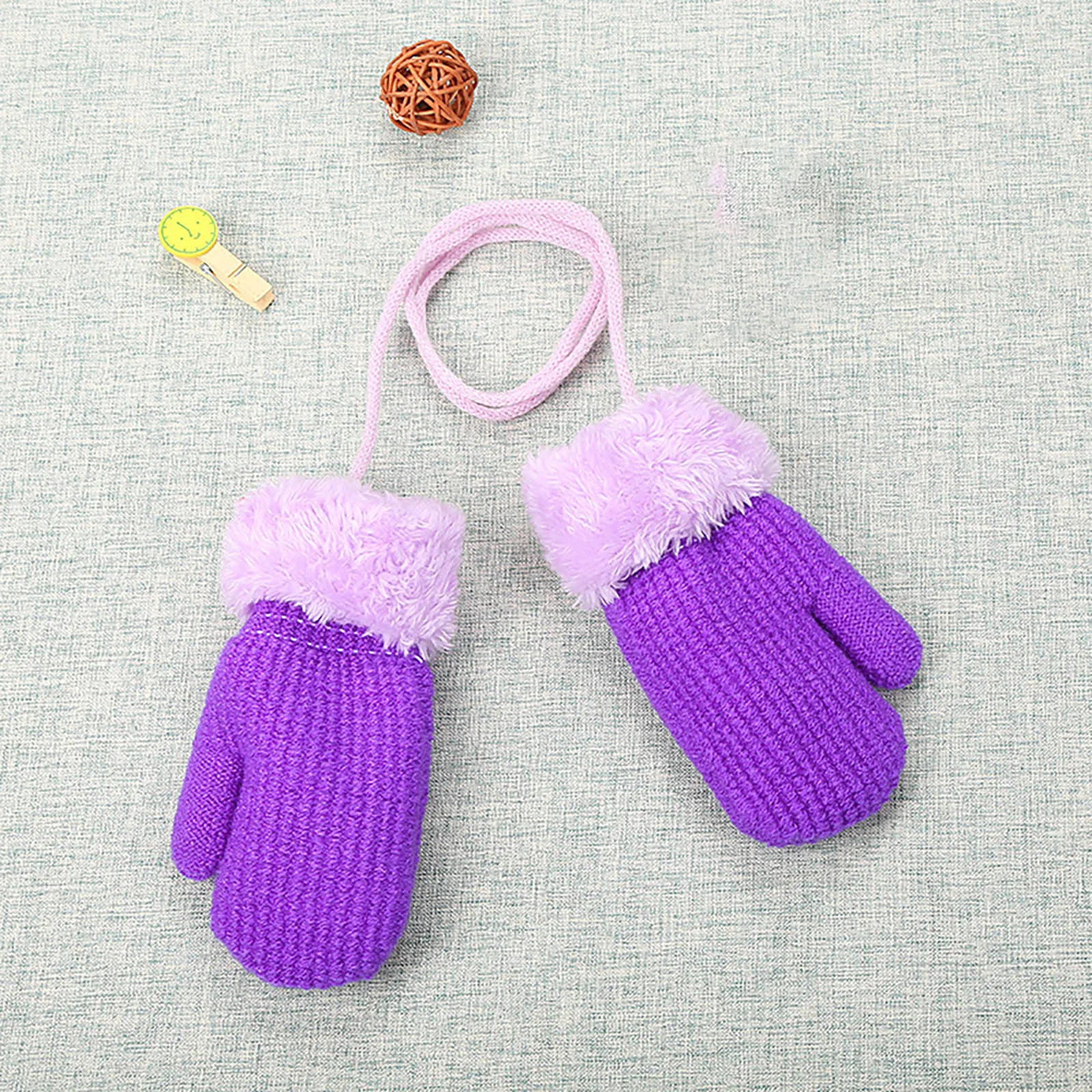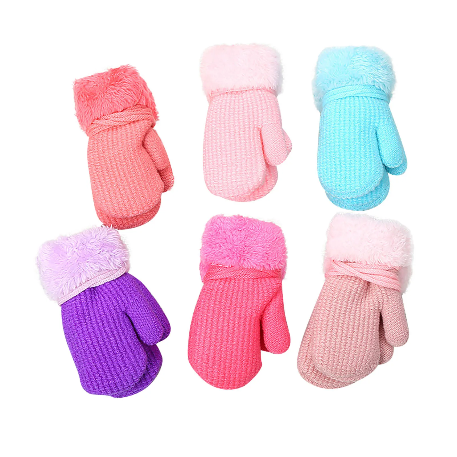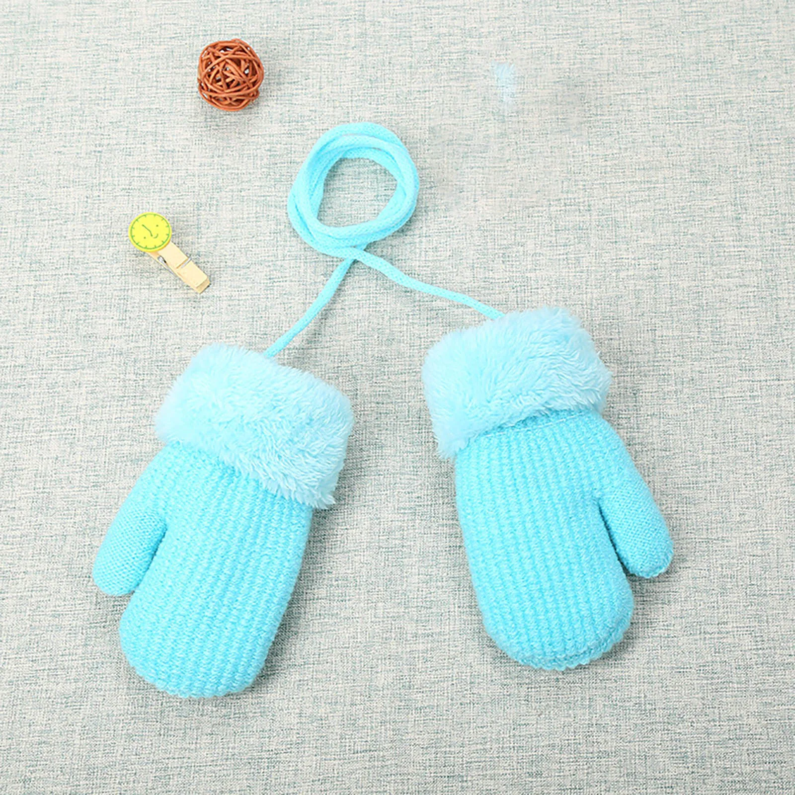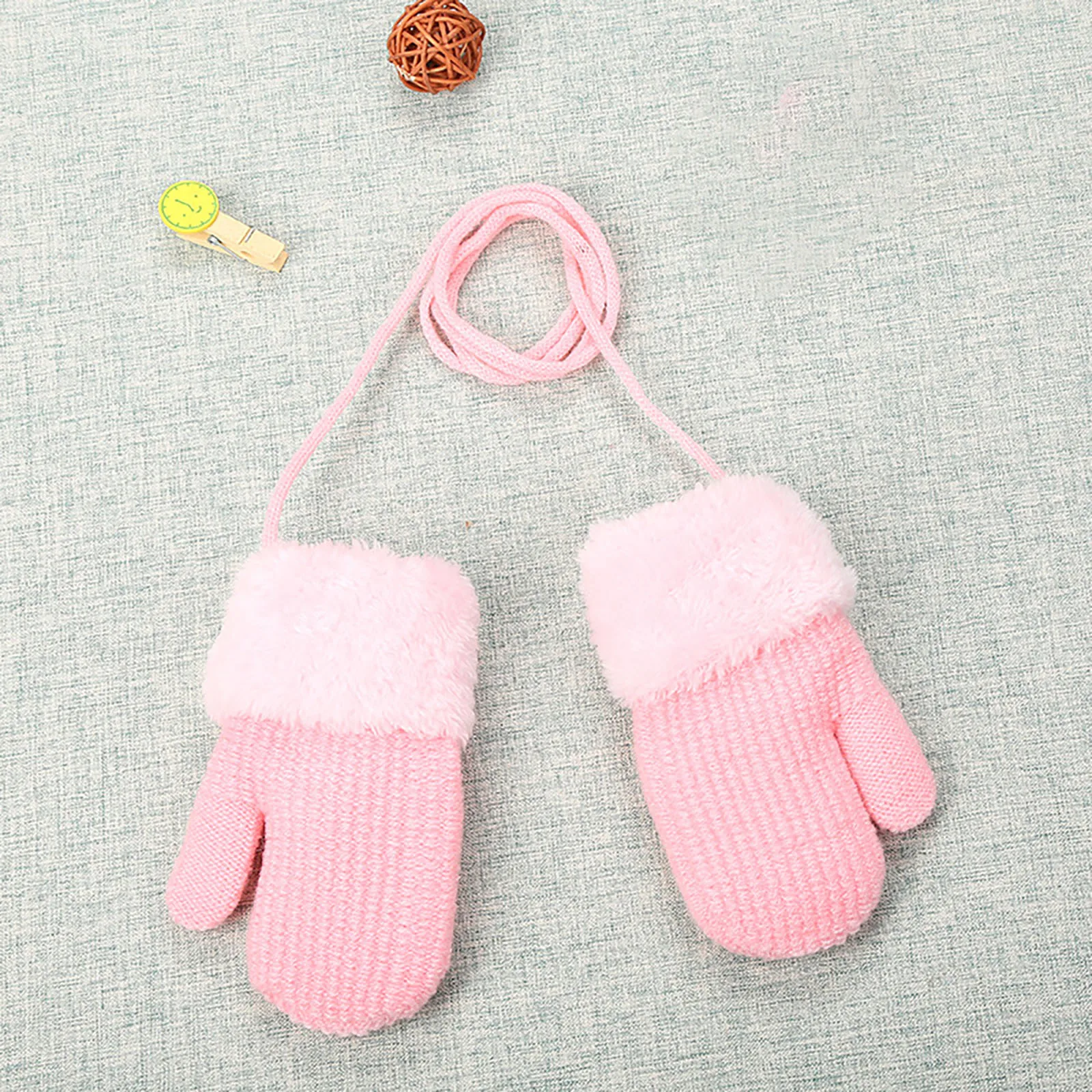 Новое поступление, зимние вязаные перчатки для маленьких мальчиков и девочек, теплые варежки с закрытыми пальцами, перчатки с веревкой для детей, малышей, детей 1-4 лет