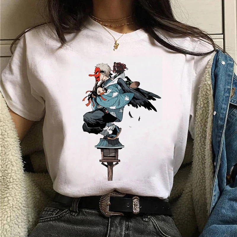 Модная футболка в стиле японского аниме с рассеивателем демонов, женские футболки с коротким рукавом, милые футболки с графическим принтом, топы унисекс, забавная футболка