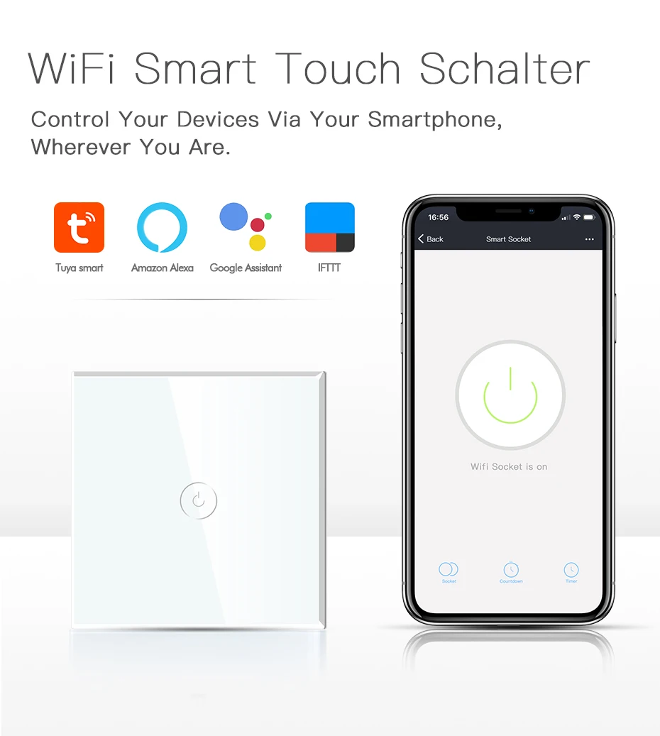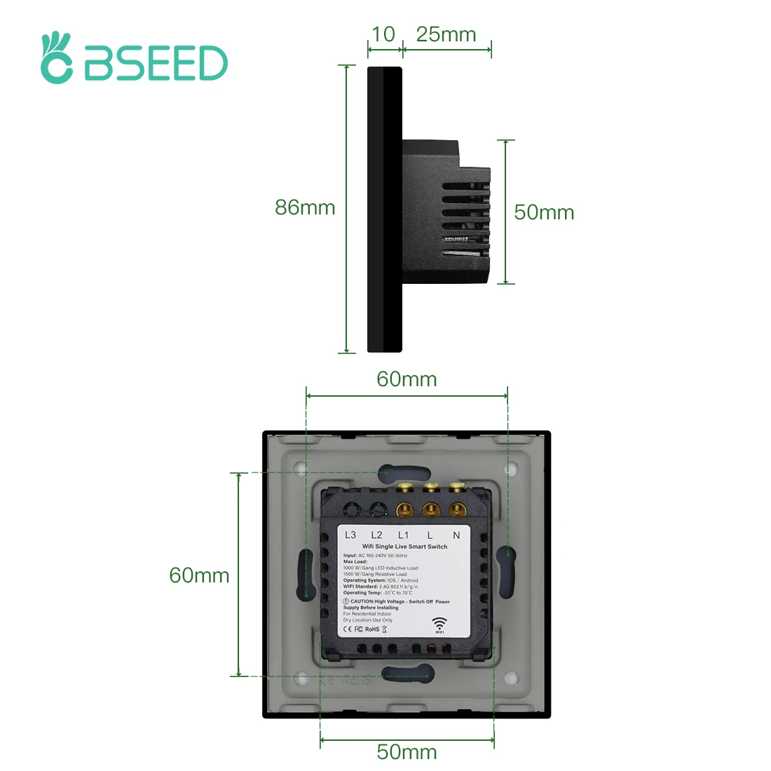 Сенсорный выключатель BSEED с одной линией и поддержкой Wi-Fi, стек...