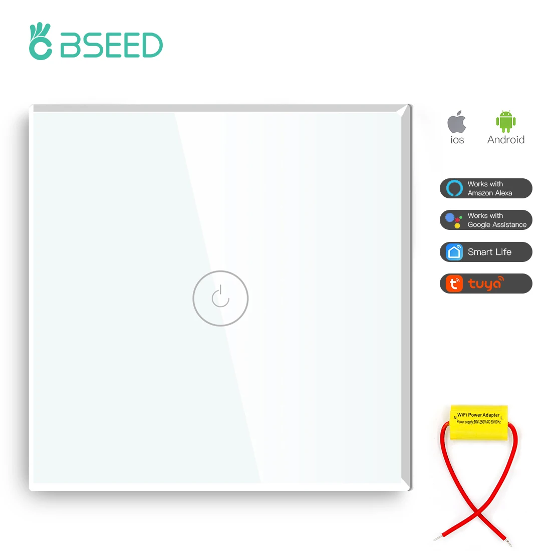 Умный сенсорный выключатель Bseed, 1 клавиша, евростандарт, Wi-Fi, 3 цвета, с кристальной стеклянной панелью
