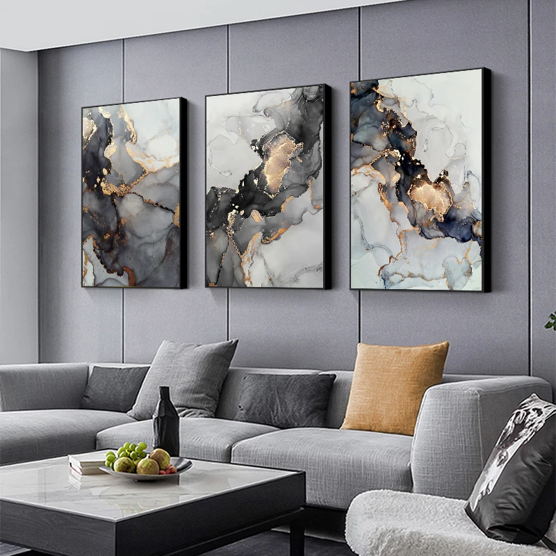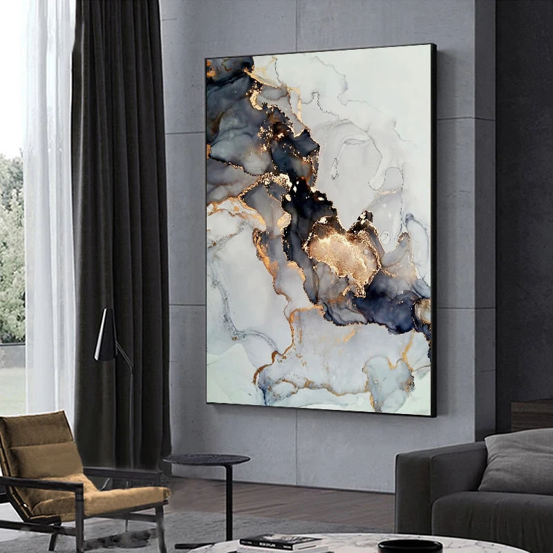 Абстрактная Золотая черная мраморная Картина на холсте современный пейзаж плакаты и печать Скандинавская Настенная картина для гостиной домашний декор