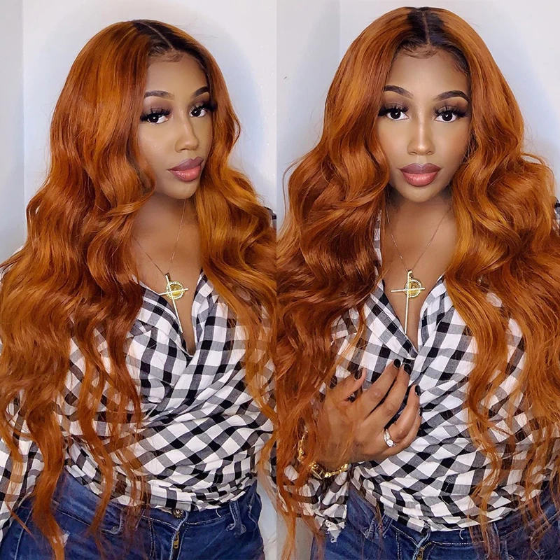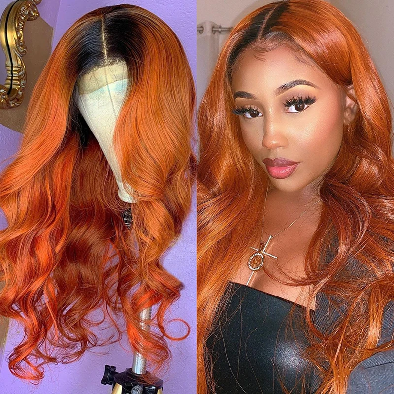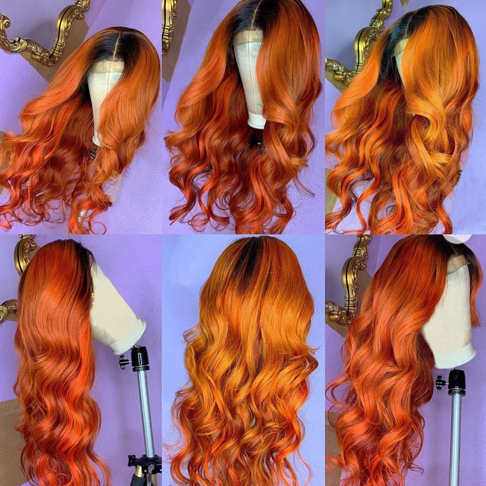 Волнистые передние парики из человеческих волос с эффектом омбре 1Bпарик из апельсинового имбиря на передней сетке, перуанский парик на сетке с застежкой T-образной частью, парик на сетке для женщин 180%