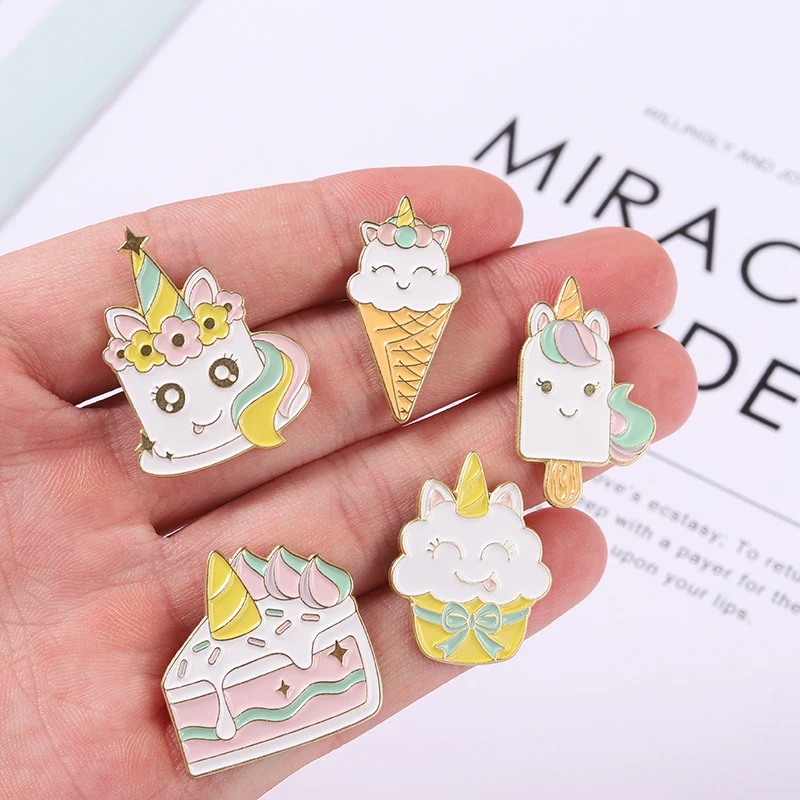 Мультяшный мусс десерт Кондитерские эмалевые булавки Радуга мороженое торт на день рождения броши значки на рюкзак воротник женское украшение для девушек