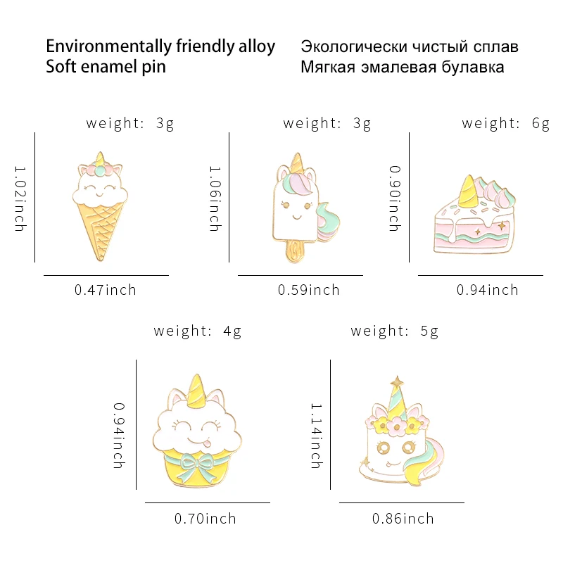 Мультяшные эмалевые булавки с десертами, радужные булавки для кексо...