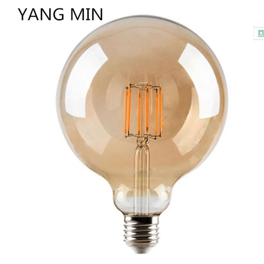 Диммируемые круглые светильник почки, большая прозрачная лампа, винтовая Светодиодная лампа накаливания Эдисона G125 E27 6 Вт, винтажная декоративная лампа в стиле ретро