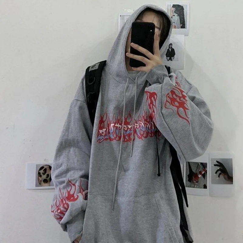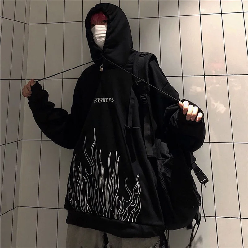 Мужская однотонная толстовка с капюшоном и принтом, в стиле Харадзюку