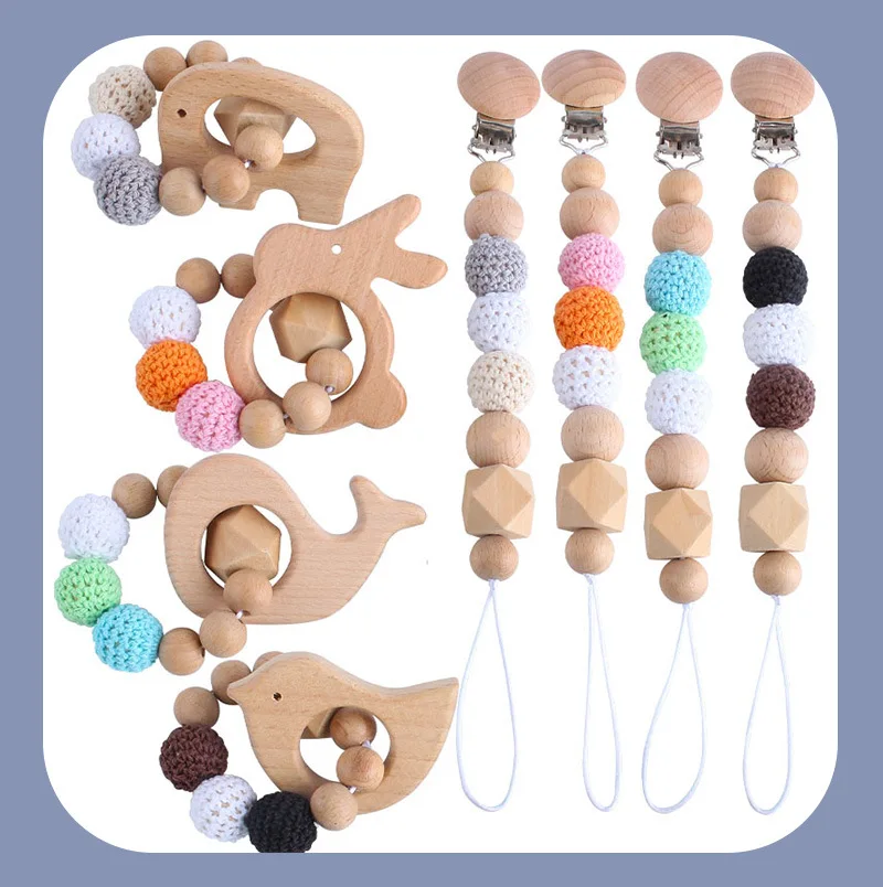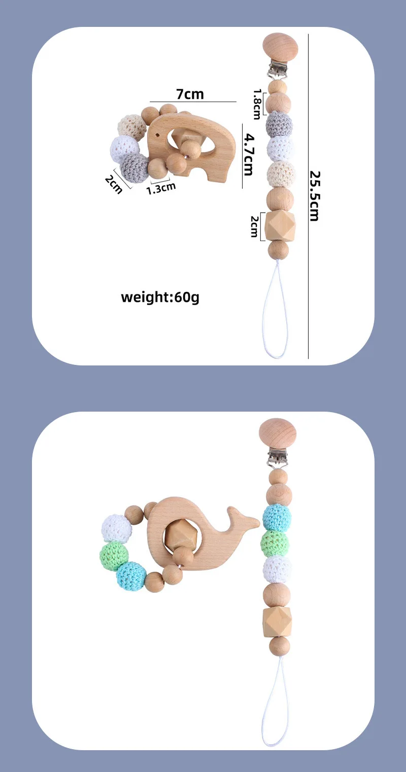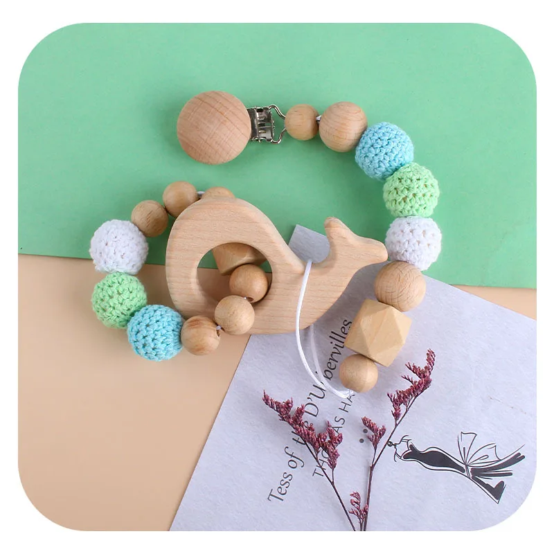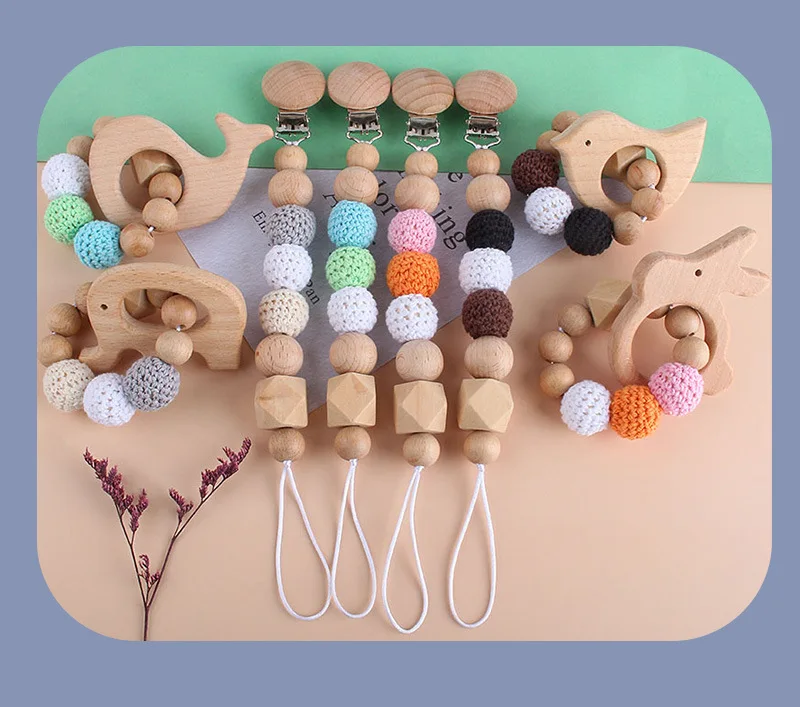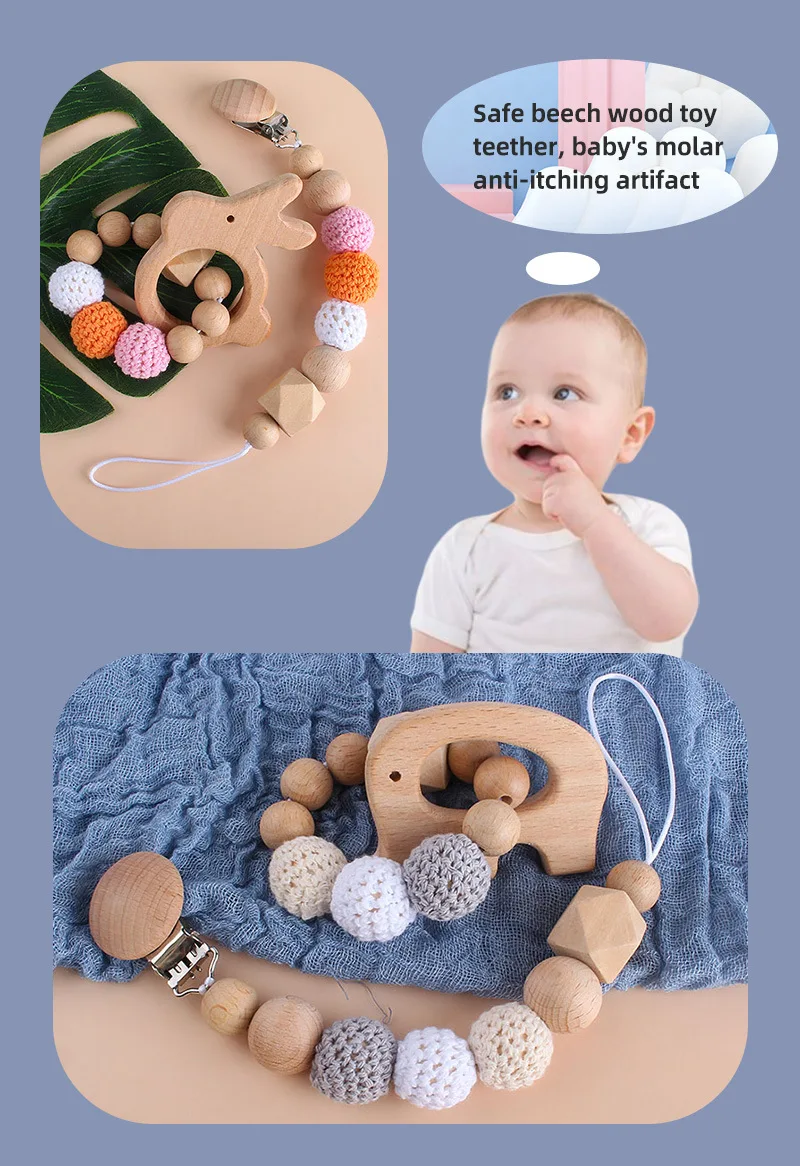 Coskiss, 1 комплект, детский прорезыватель из бука, деревянные бусины в виде животных, вязаные крючком, браслет сделай сам, цепочка для пустышки, детские игрушки, подарки