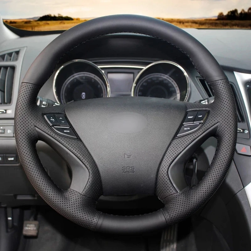 Чехол рулевого колеса автомобиля черная натуральная кожа для Hyunda...