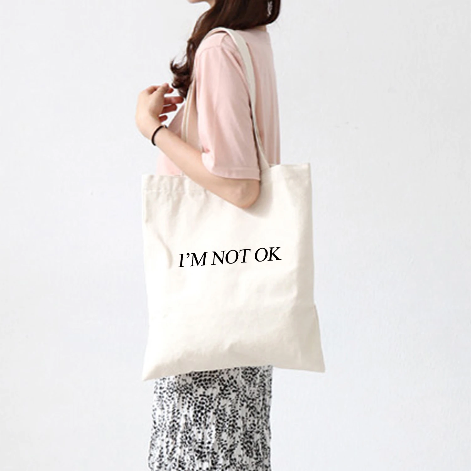 Женская Хлопковая Сумка-тоут с надписью и смайликом, Большой Многоразовый холщовый саквояж на плечо в стиле Харадзюку