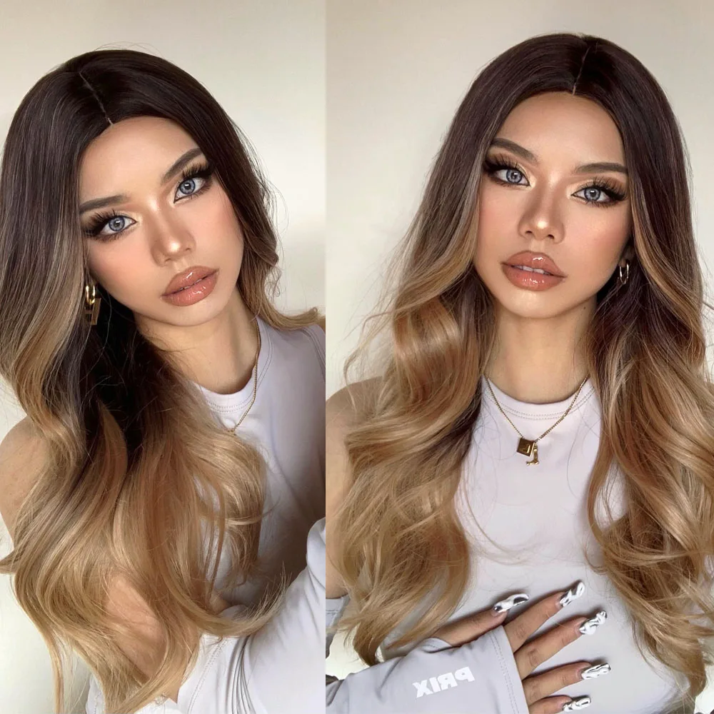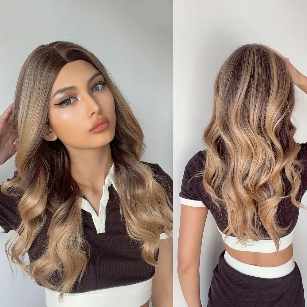 Женский синтетический парик с эффектом омбре henри MARGU, парик с натуральными волосами блонд коричневого цвета, парик средней длины, термостойкие волнистые парики