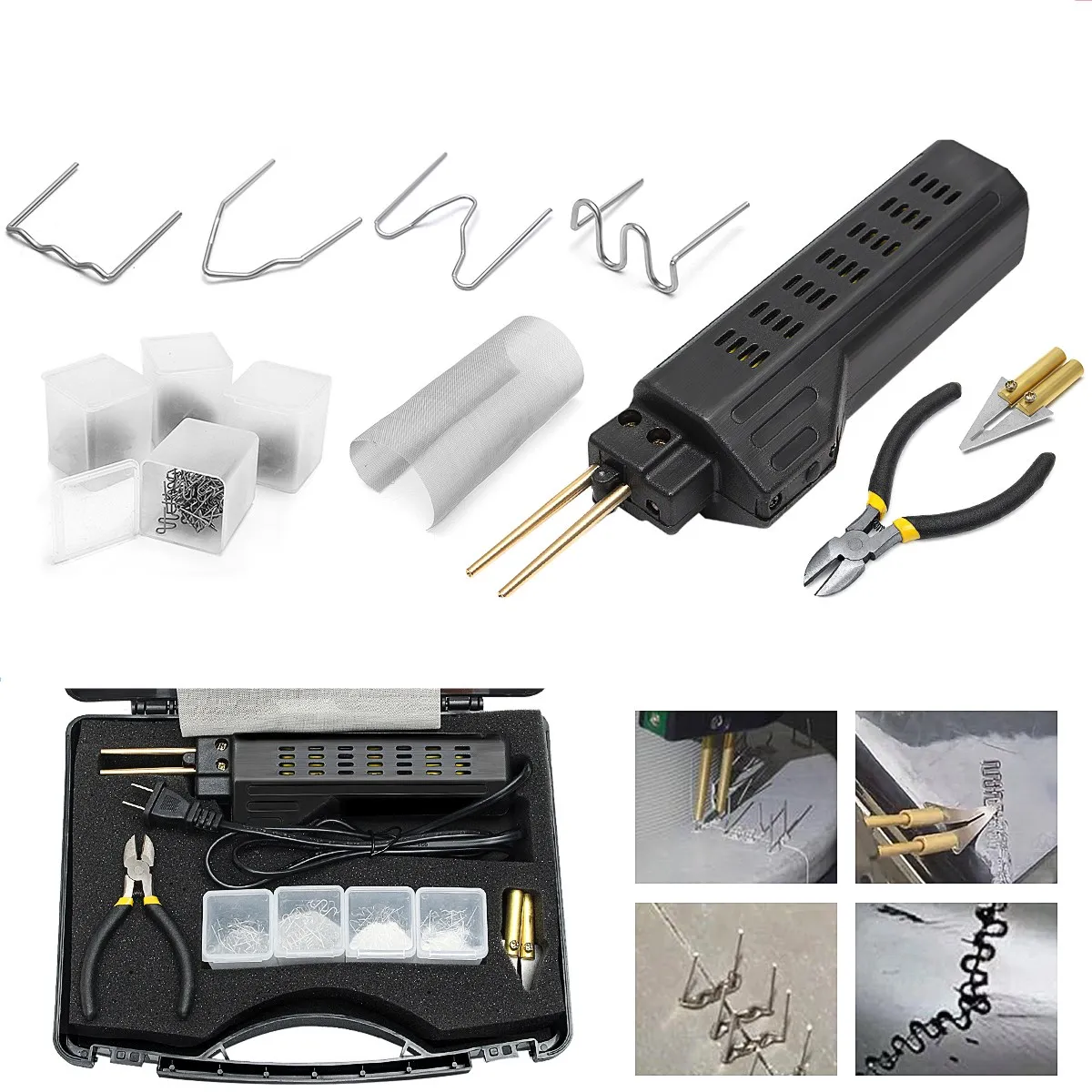 Инструкция-Подключите горячий степлер к источнику питания 220-250 В.-Местная температура сварки для плавной регулировки, может быть подходит для любой толщины сварки пластикового материала.-Выберите подходящий тип сварочного гвоздя, вставьте идеальный электродный рот.-Сварка внутренней поверхности поврежденной части сварного шва.-Нажмите кнопку Пуск, зарядите расплавленный пластик, чтобы правильно сварить.-При плавлении гвоздей в нужное положение отпустите кнопку и подождите несколько секунд, чтобы охладить пластик.-Повторите эту работу шаг, пока ногти не будут равномерно распределены, а затем вырежьте выступающие части наклонные кусачки.