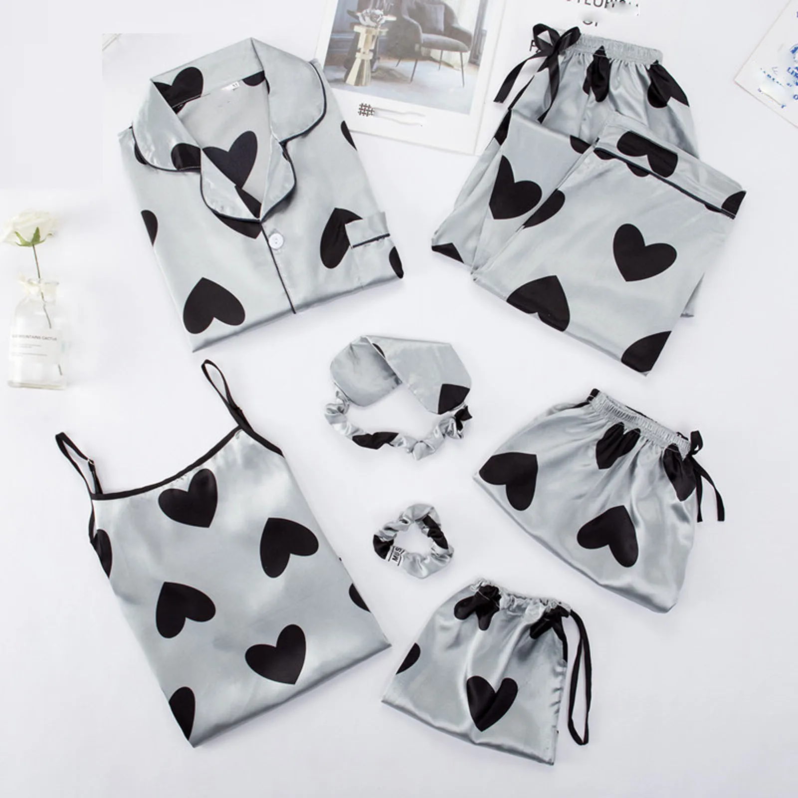 Женская домашняя одежда, 7 предметов, женские пижамные комплекты из искусственного шелка, комплекты одежды для сна, домашняя одежда на весну и лето, пижамы женские 2021 E3