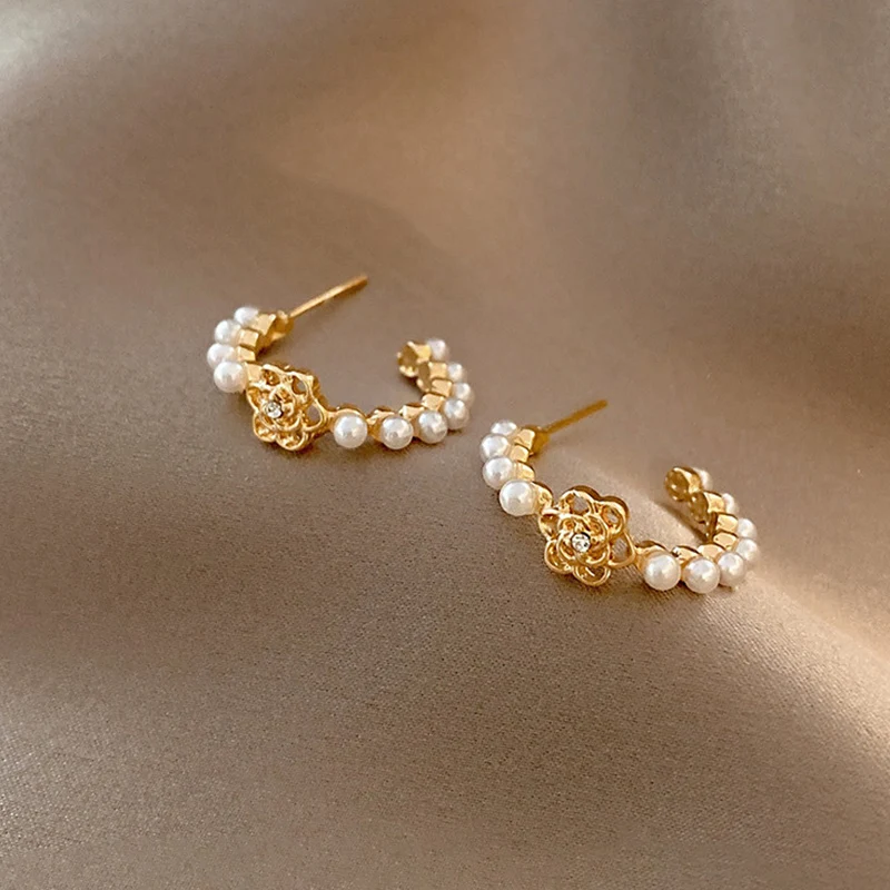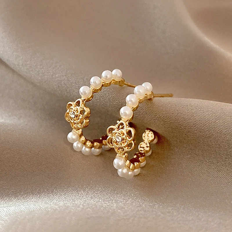 Серьги-кольца женские, с жемчугом, винтажные, свадебные