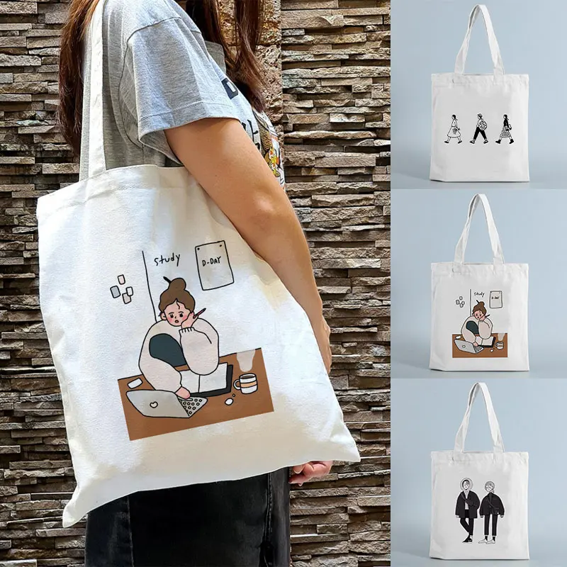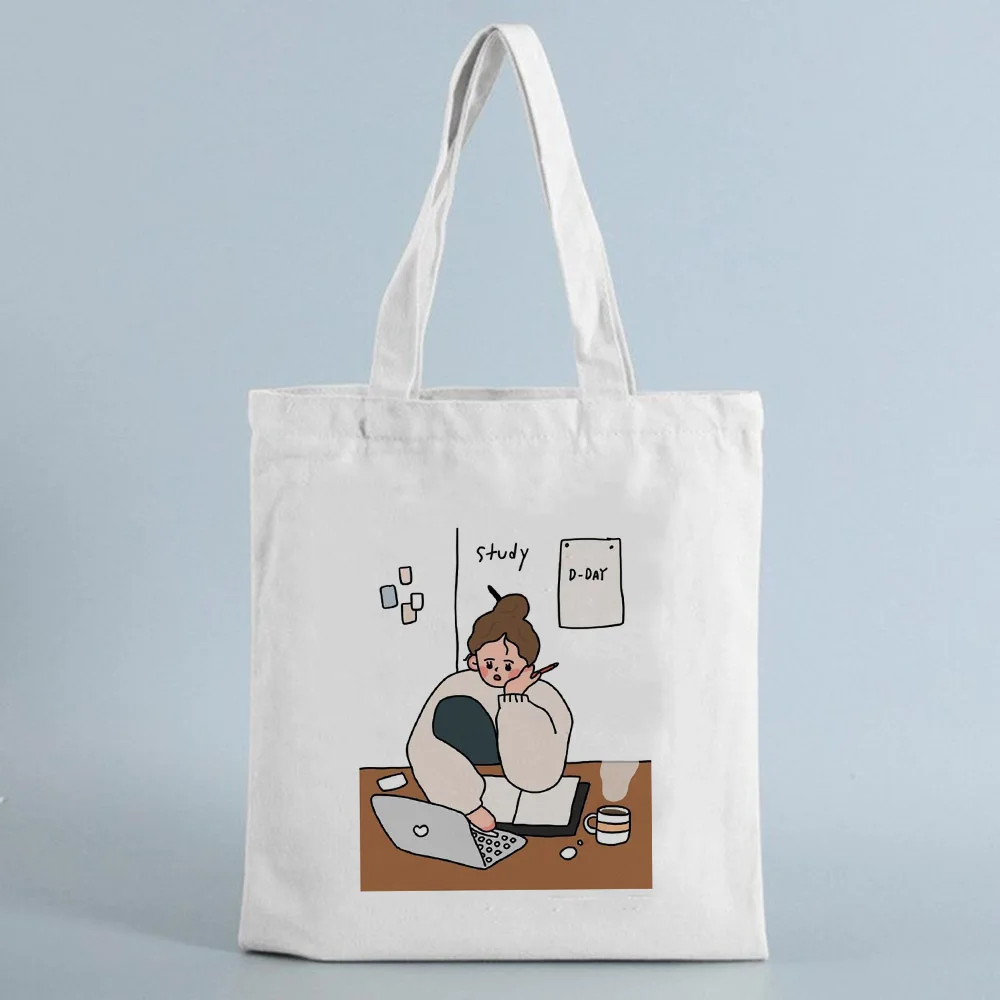 Женская Холщовая Сумка-тоут для покупок с мультяшным принтом, Женск...
