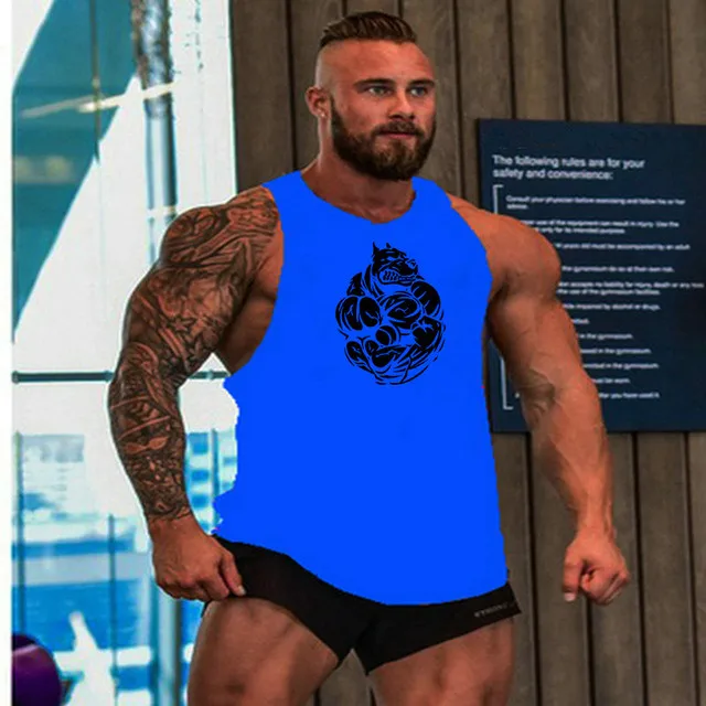 Рубашка мужская хлопковая без рукавов, майка для воркаута, бодибилдинга, тренировок, майка для мускулов и фитнеса, жилет в виде зверя с черепом, в тренажерном зале