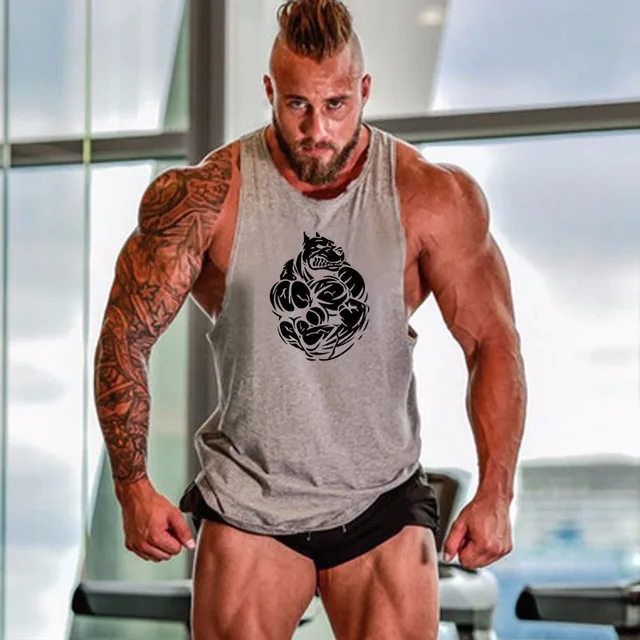 Одежда для фитнеса и бодибилдинга майка с животным принтом, мужская...
